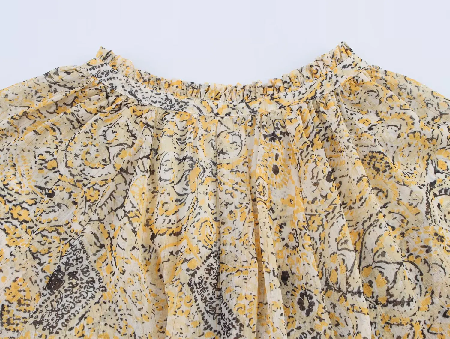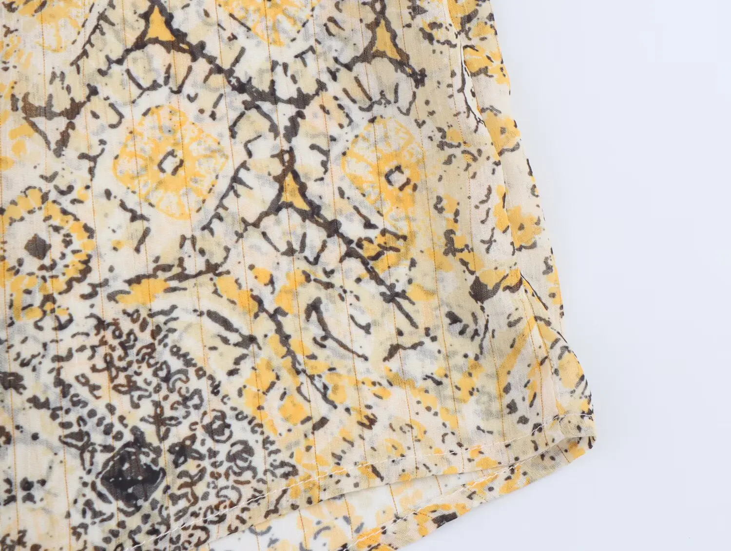 طقم أنيق صيفي من قميص واسع وتنورة دافئة.