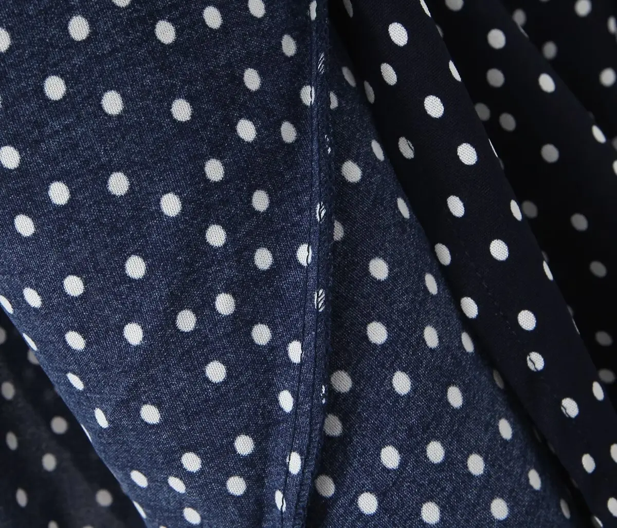 فستان نسائي طويل منقط باللون الأزرق الداكن 2025