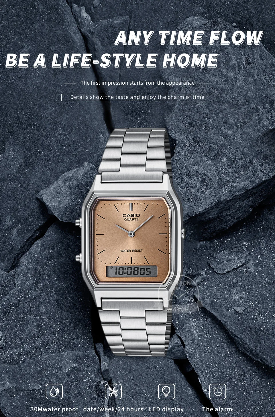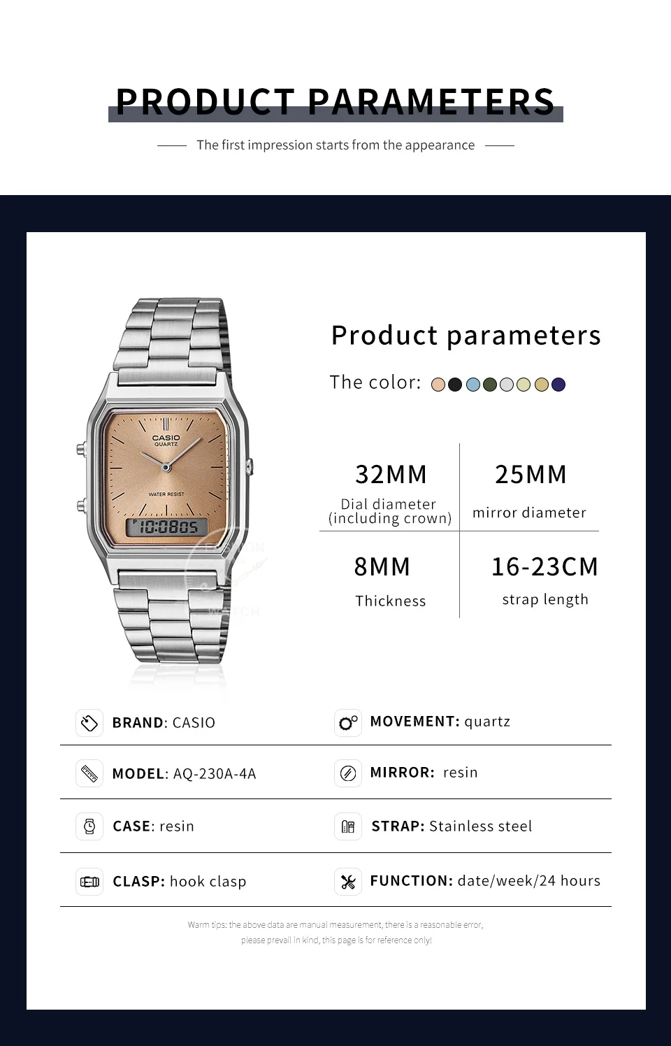 ساعة كاسيو للرجال بشاشة عرض مزدوجة وتصميم كلاسيكي ومينا شخصي وحركة كوارتز ومقاومة للماء AQ-230A-
