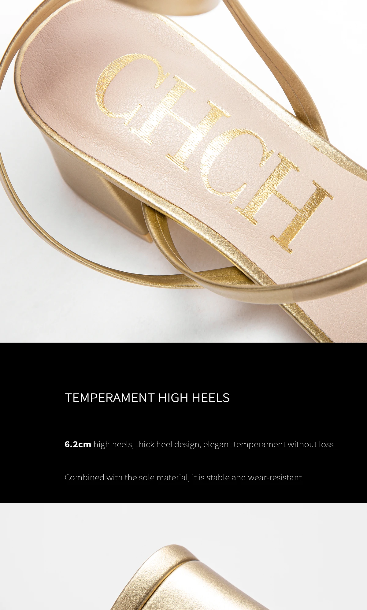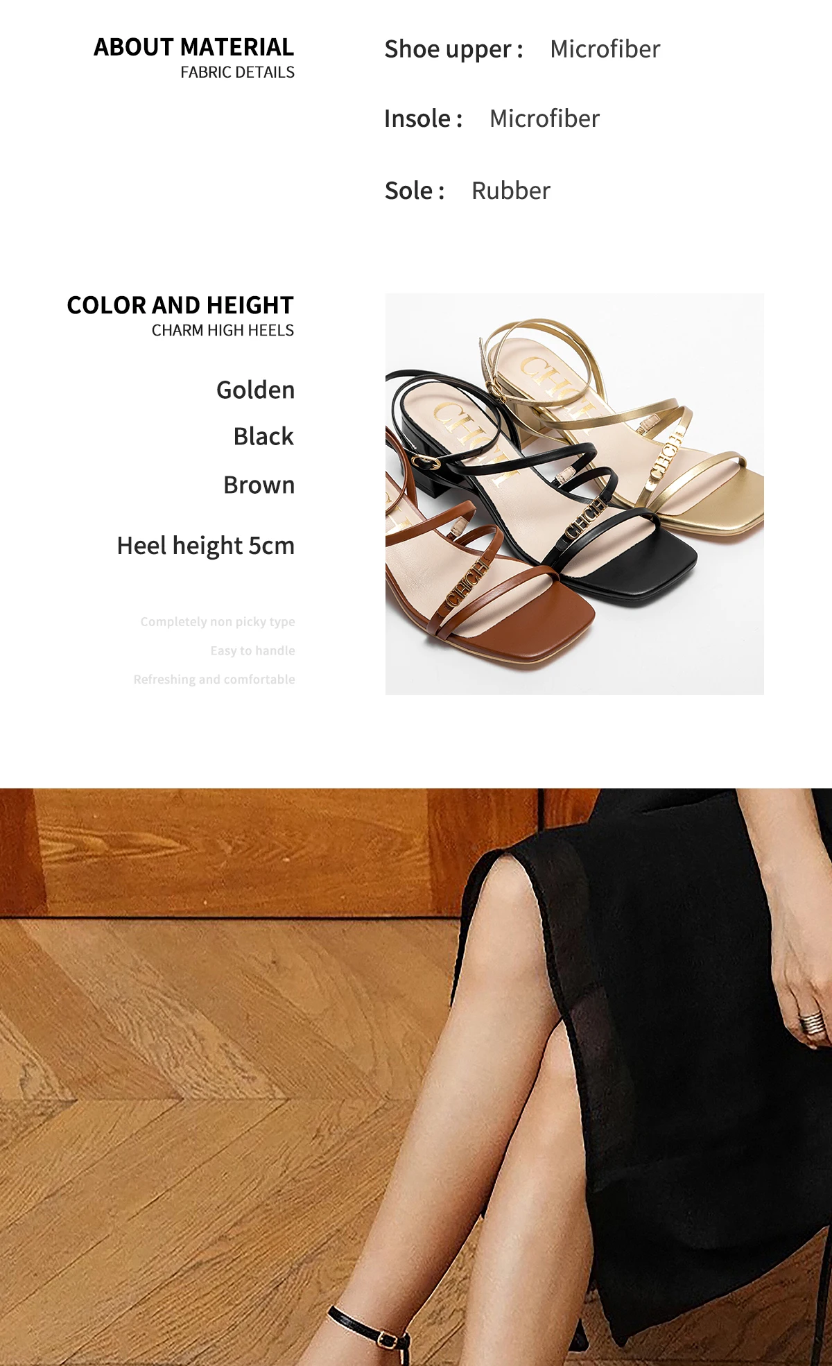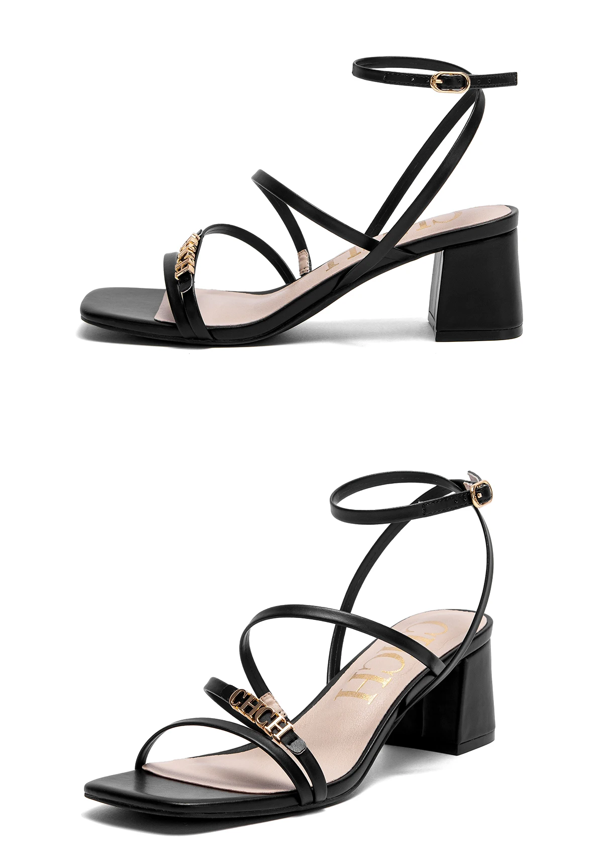 حذاء نسائي CHCH بكعب عالٍ جديد صيفي كاجوال بحزام أسود للتنقل 6 سم
