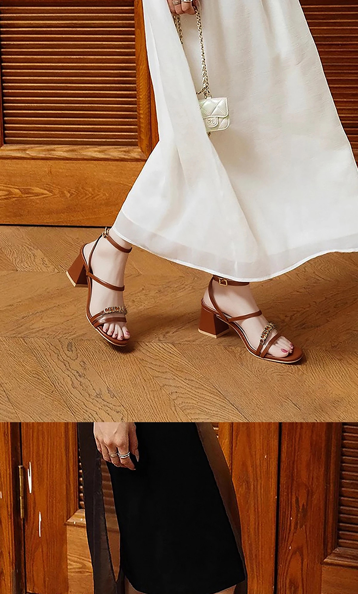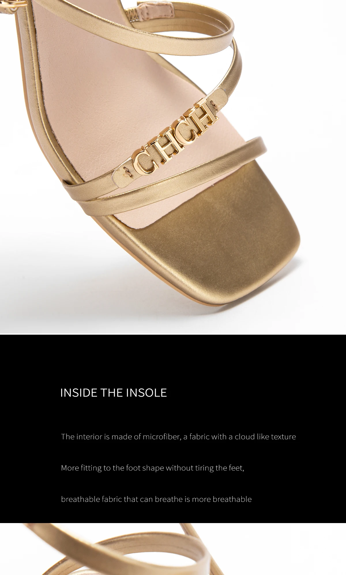 أحذية CHCH النسائية ذات الكعب العالي الجديدة الصيفية ذات الحزام الأسود أحذية كاجوال نسائية للتنقل