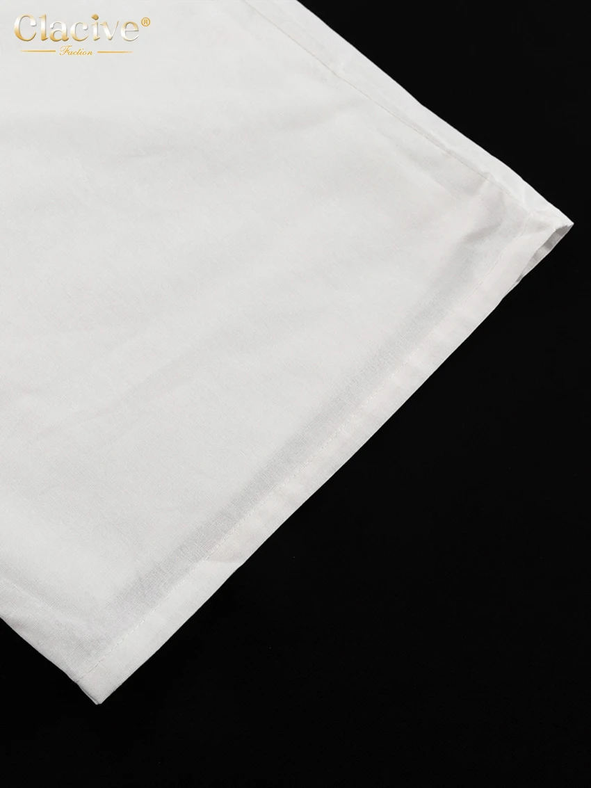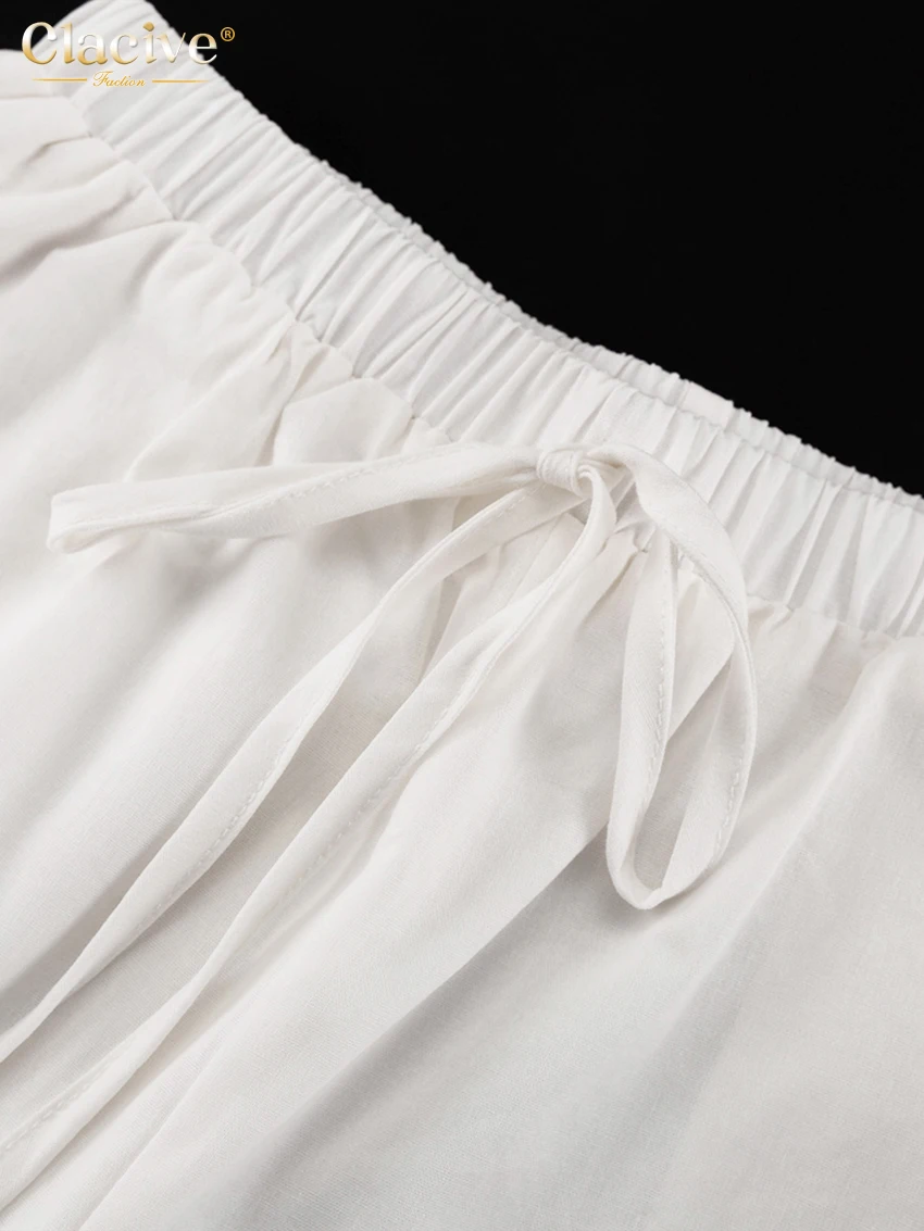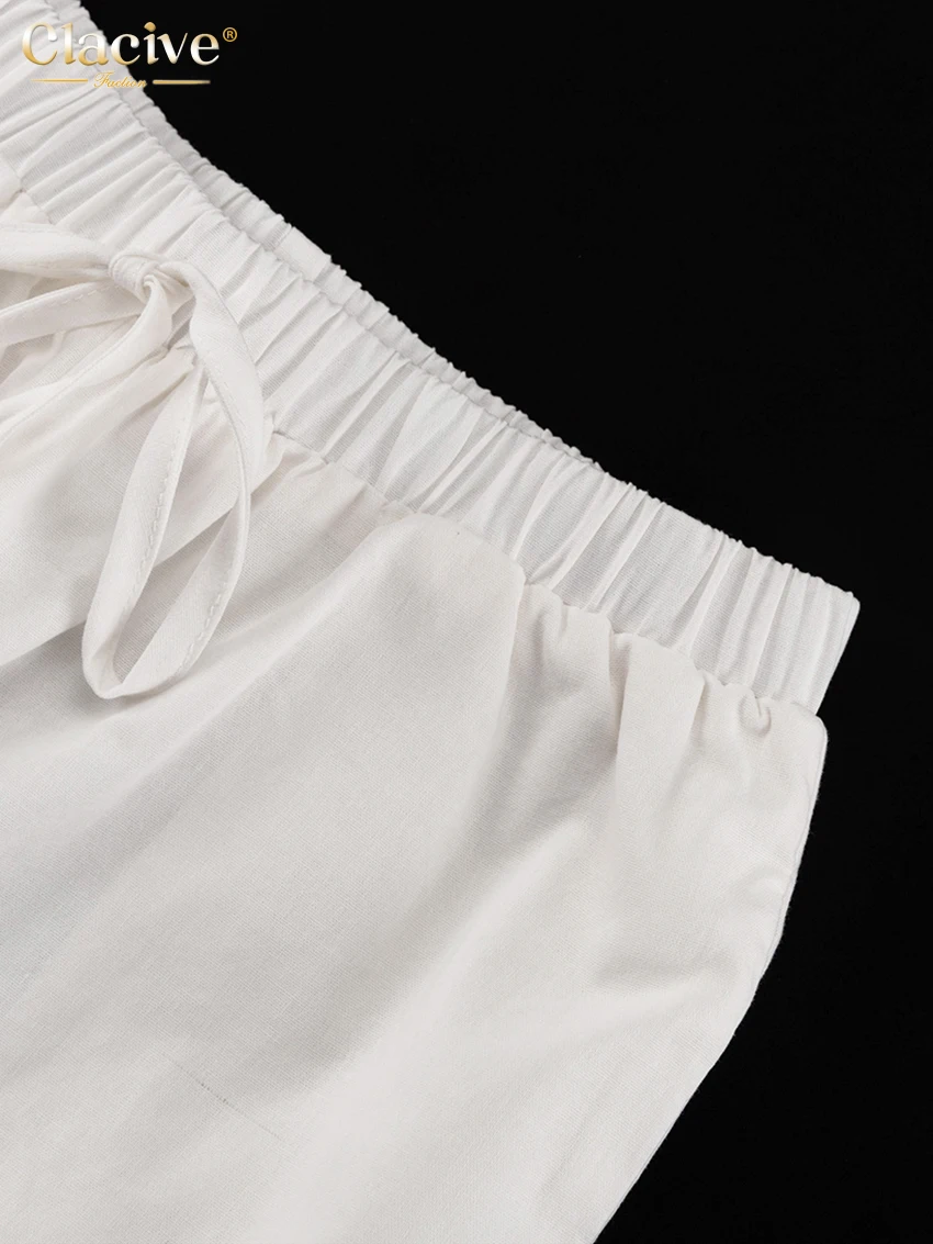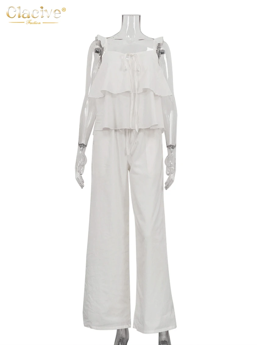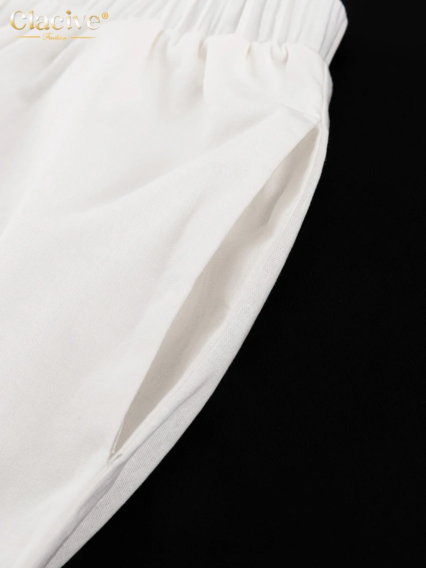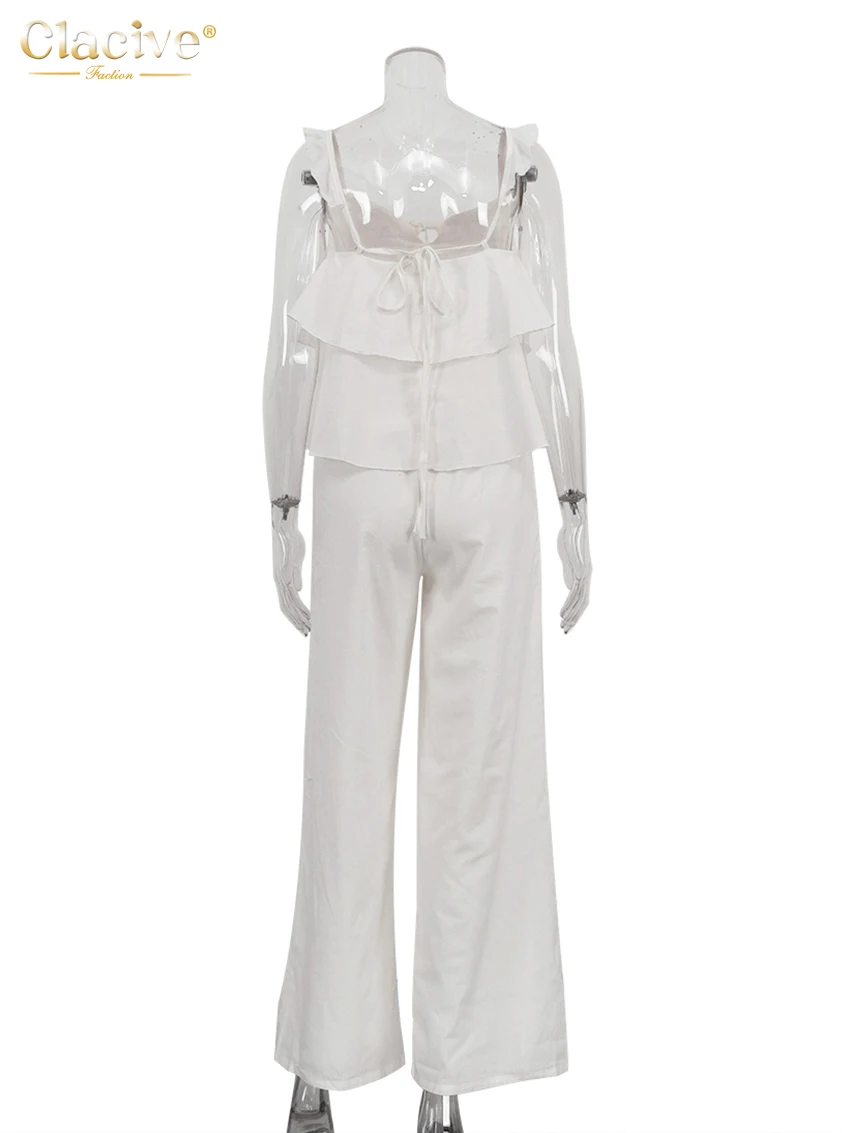 طقم نسائي من قطعتين من القطن الأبيض الفضفاض من Clacive صيفي 2025، مكون من بلوزة بدون أكمام مع بنطلون واسع وخصر مرتفع للنساء