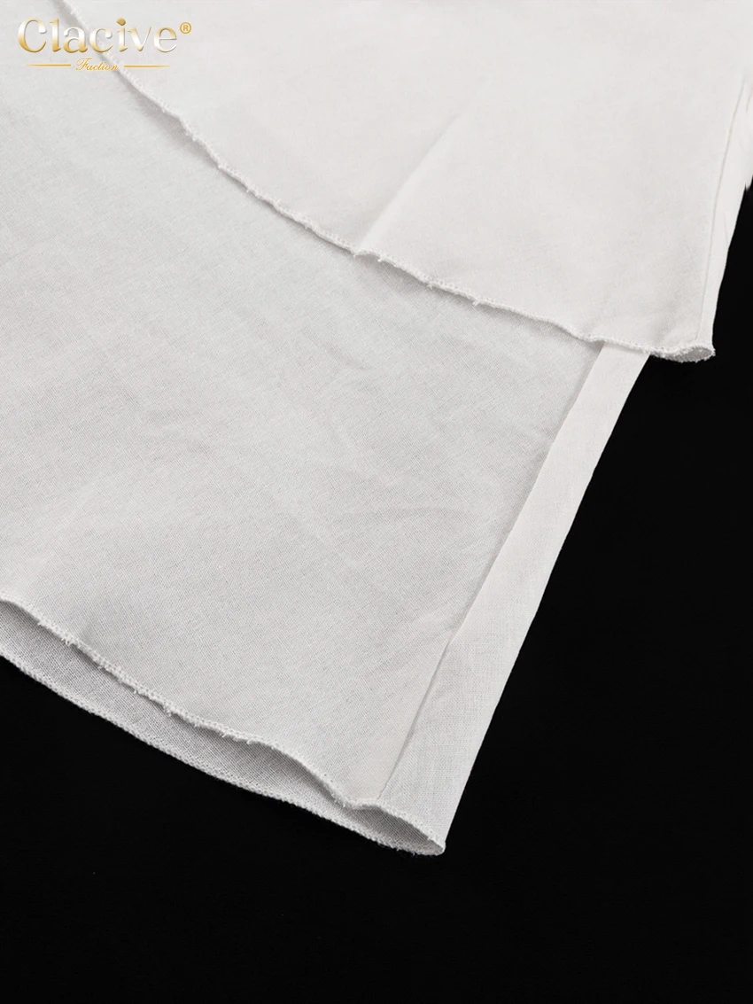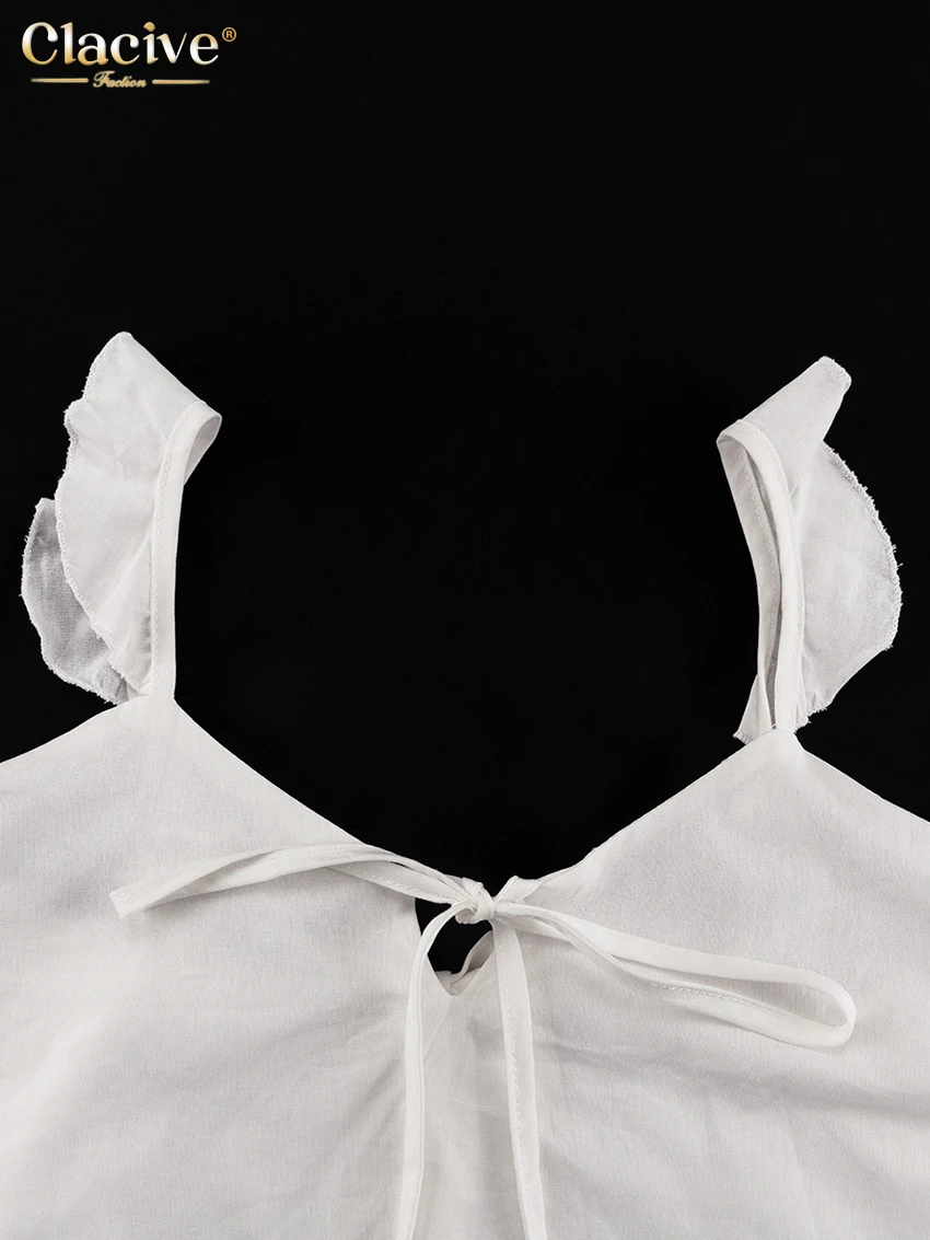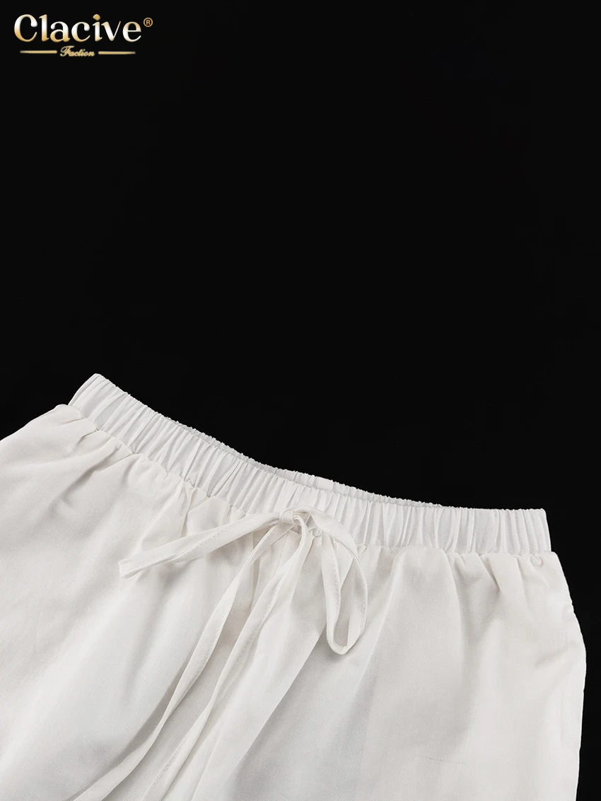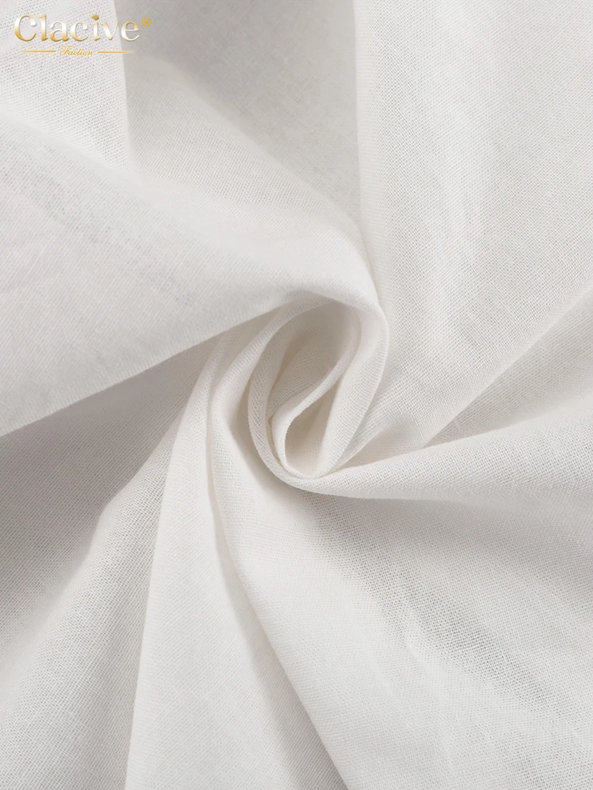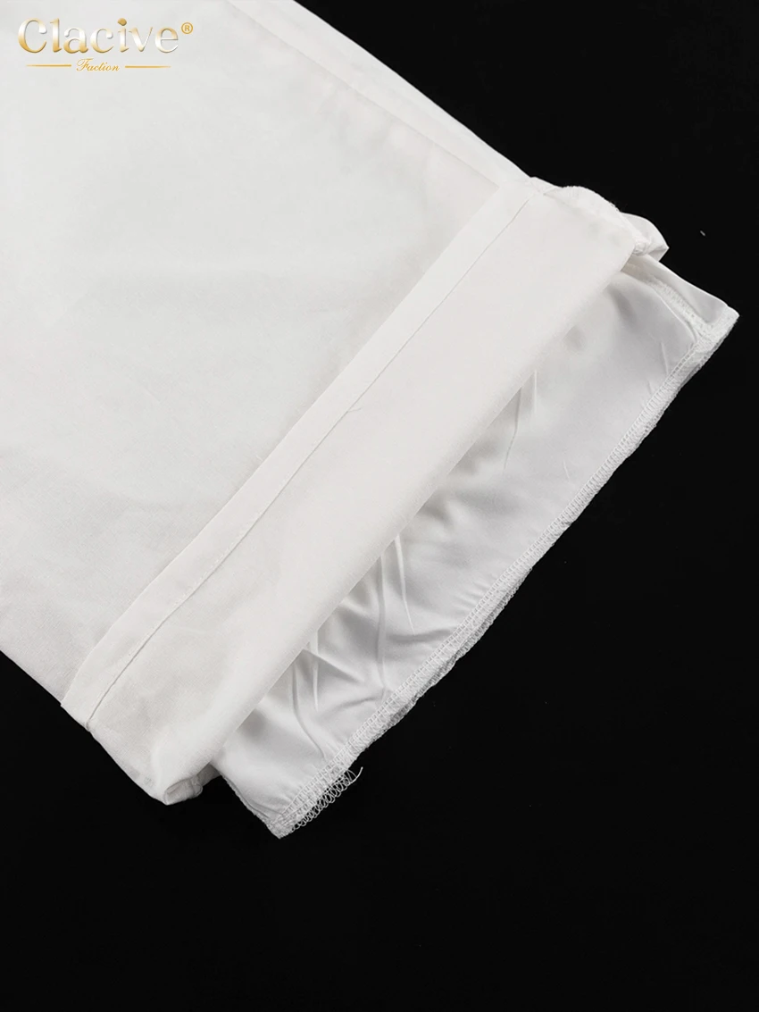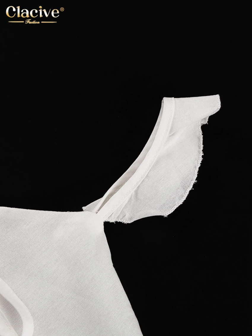 طقم نسائي من قطعتين من القطن الأبيض الفضفاض من Clacive صيفي 2025، مكون من بلوزة بدون أكمام مع بنطلون واسع وخصر مرتفع للنساء