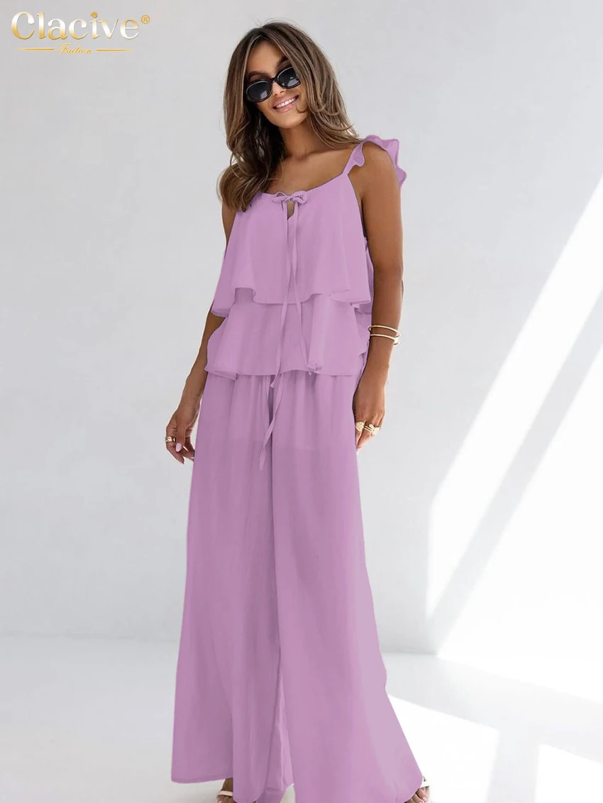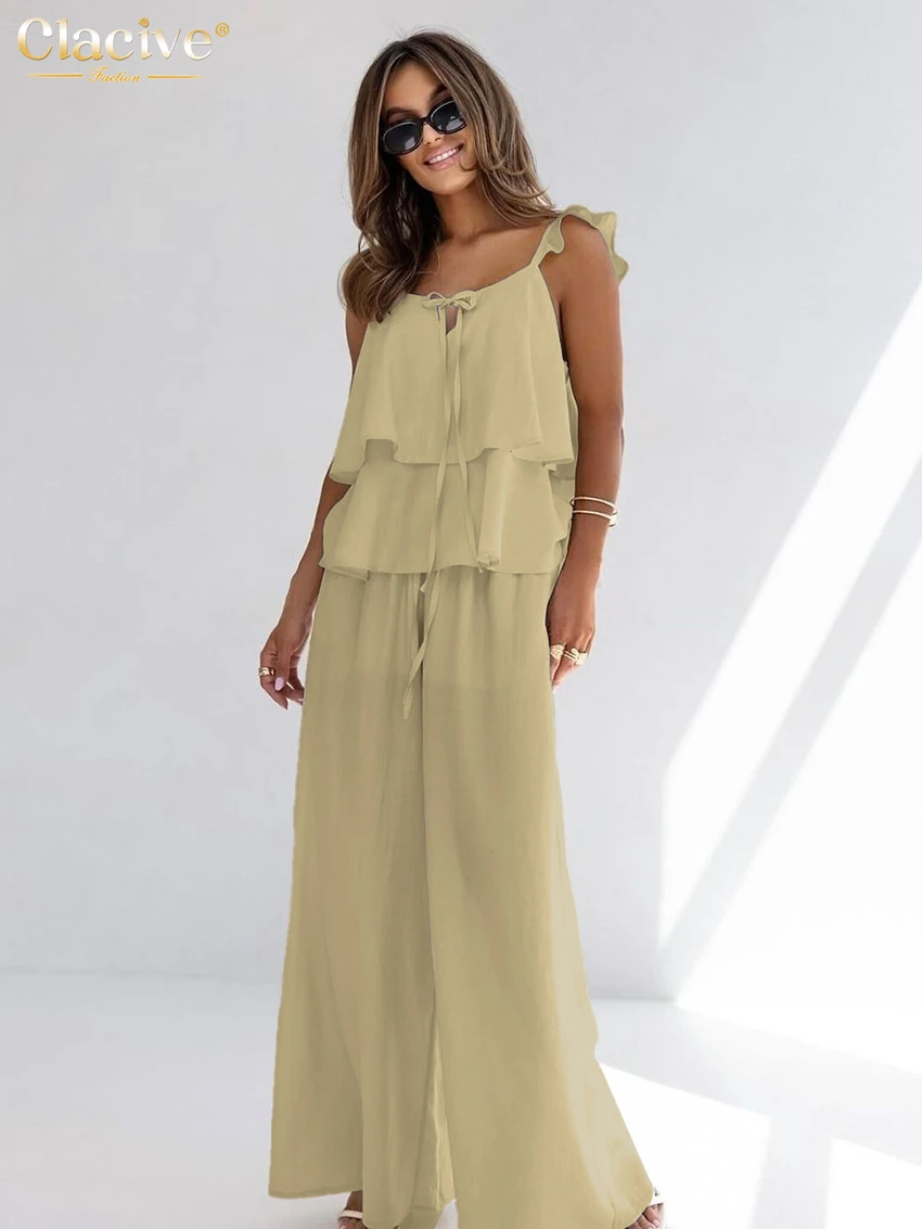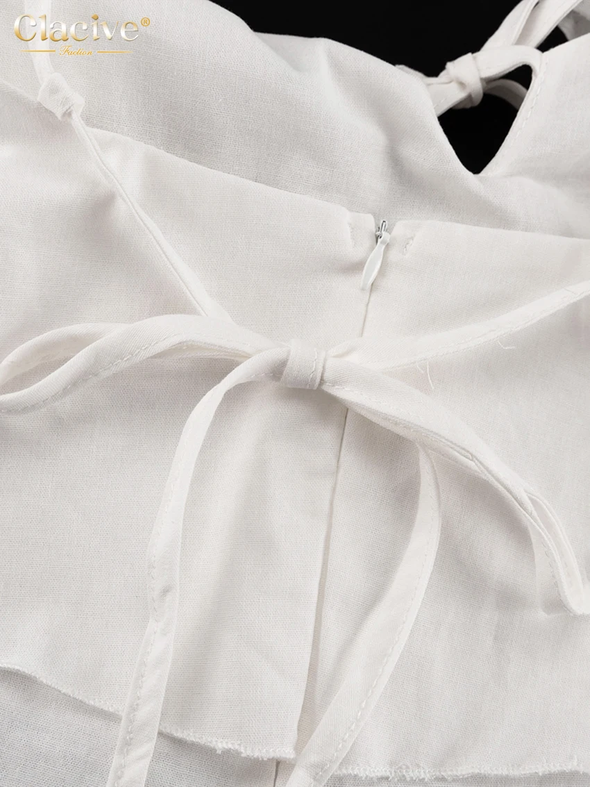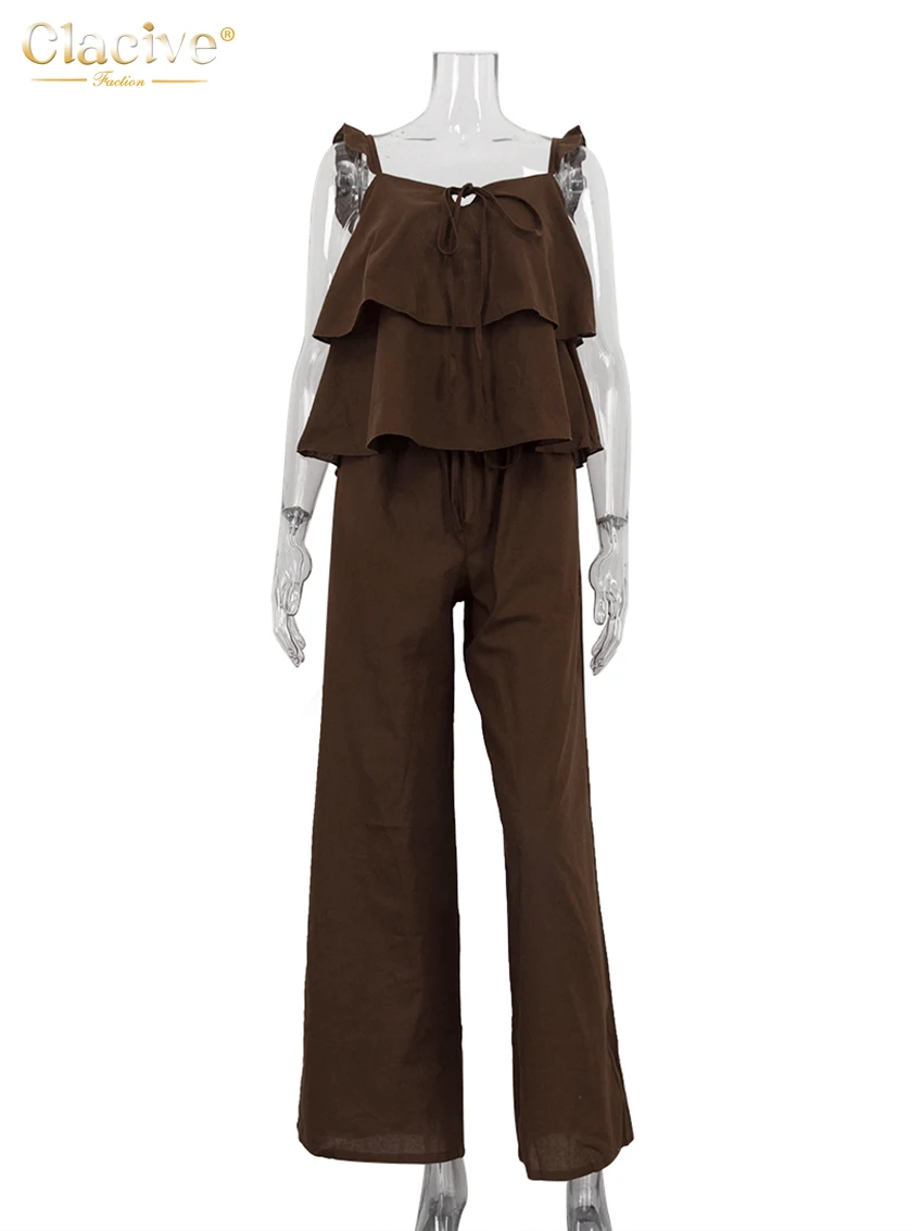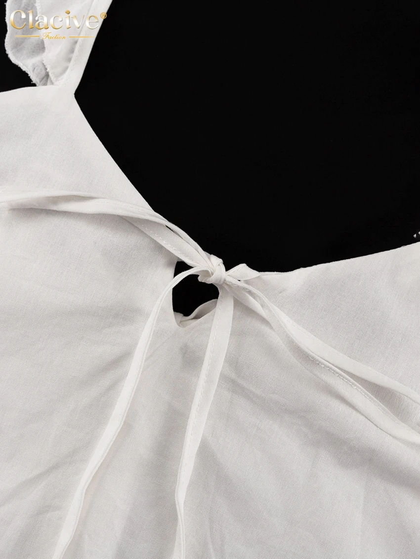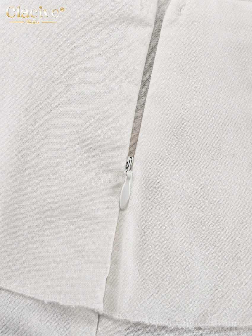 طقم نسائي من قطعتين من القطن الأبيض الفضفاض من Clacive صيفي 2025، مكون من بلوزة بدون أكمام مع بنطلون واسع وخصر مرتفع للنساء
