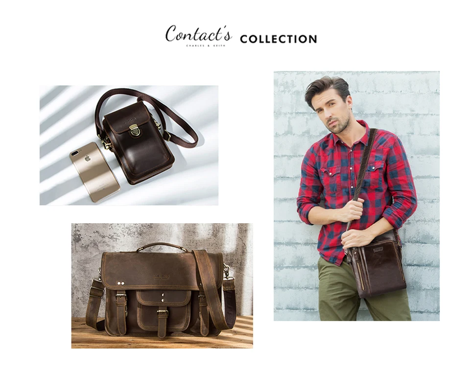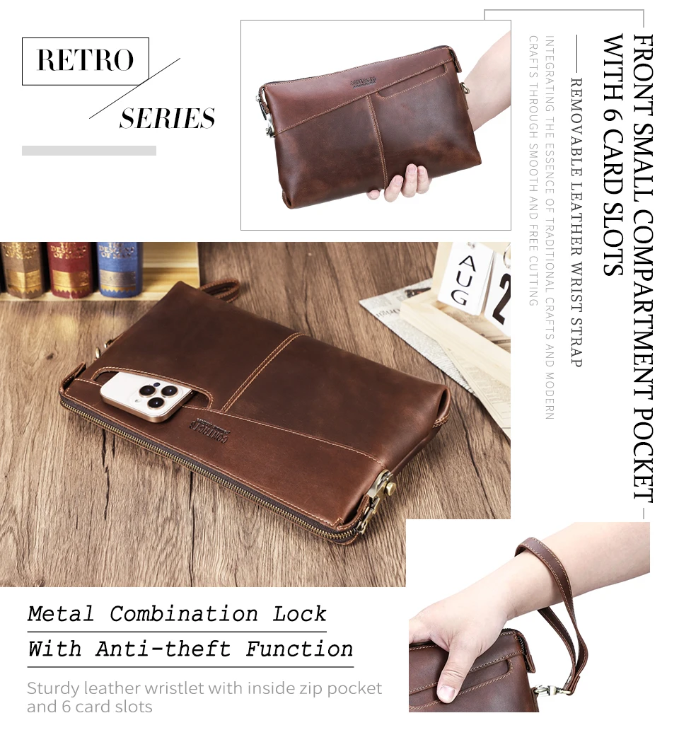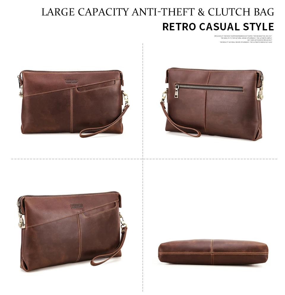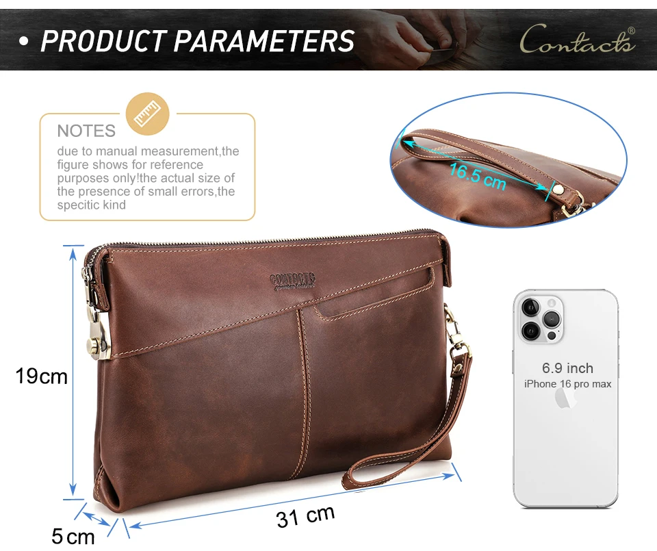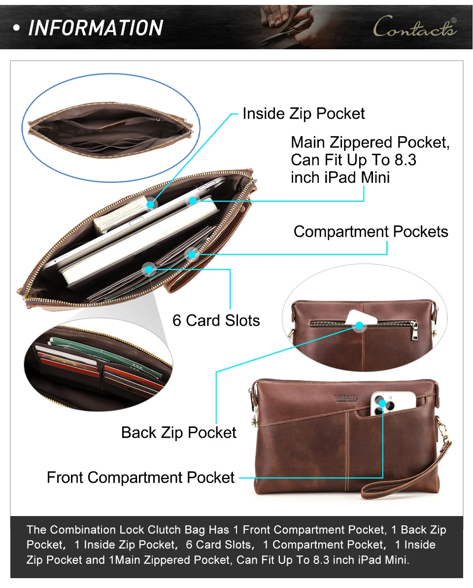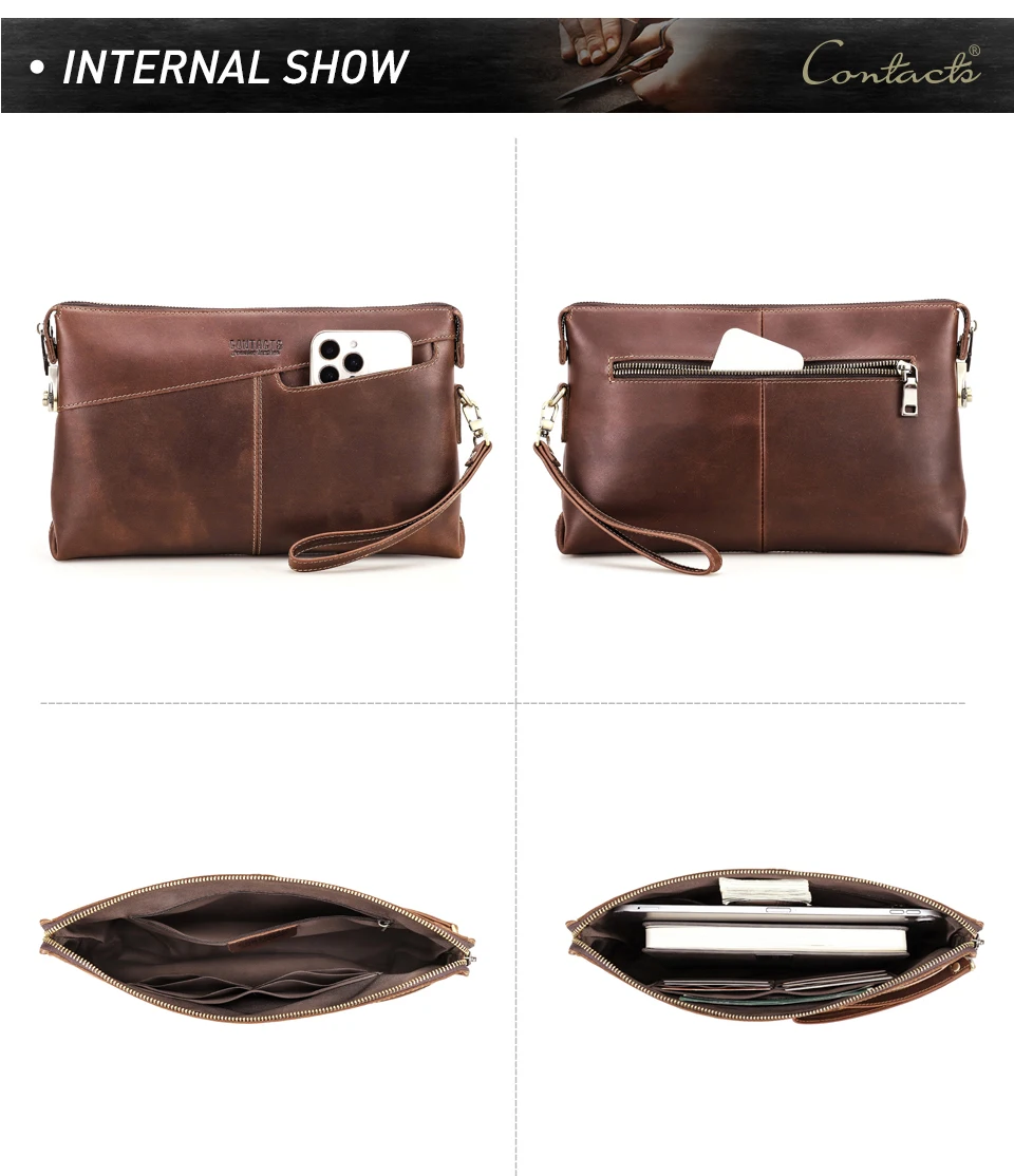 حقائب كلاتش من الجلد الطبيعي للرجال من CONTACT'S مزودة بقفل أمان وجيب للهاتف وحقيبة يد ومحفظة للرجال