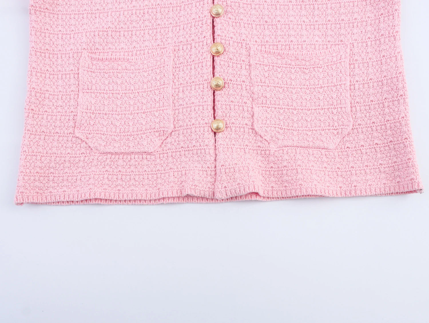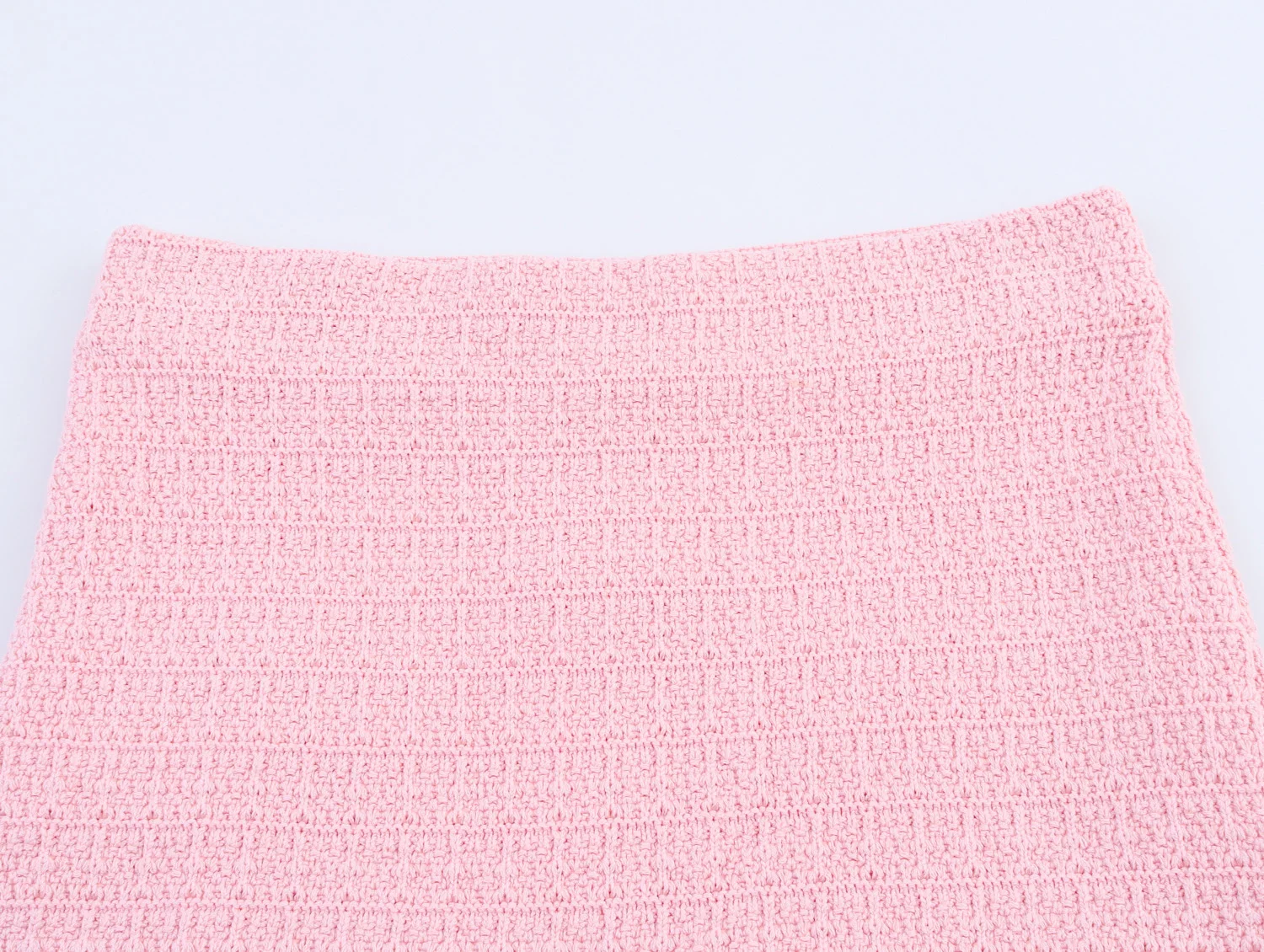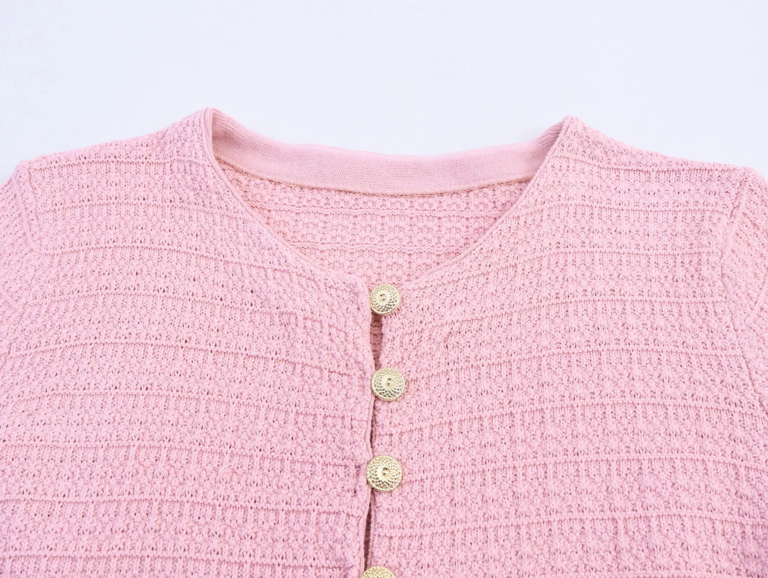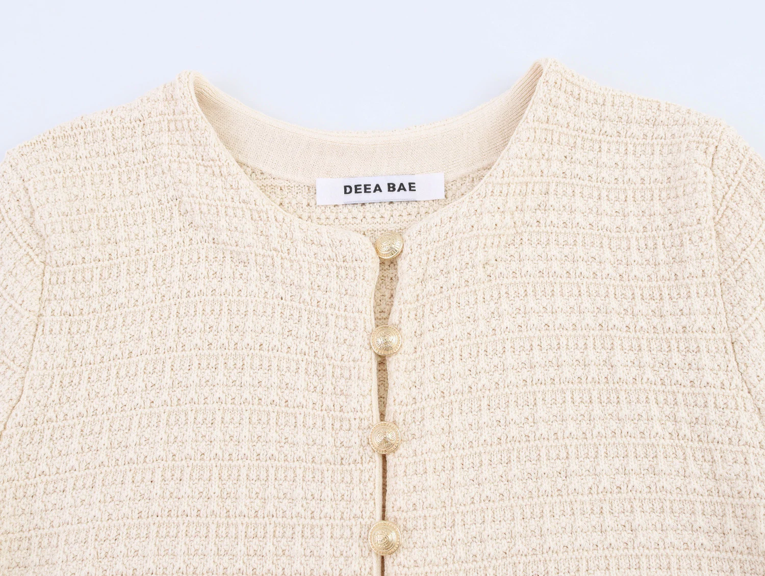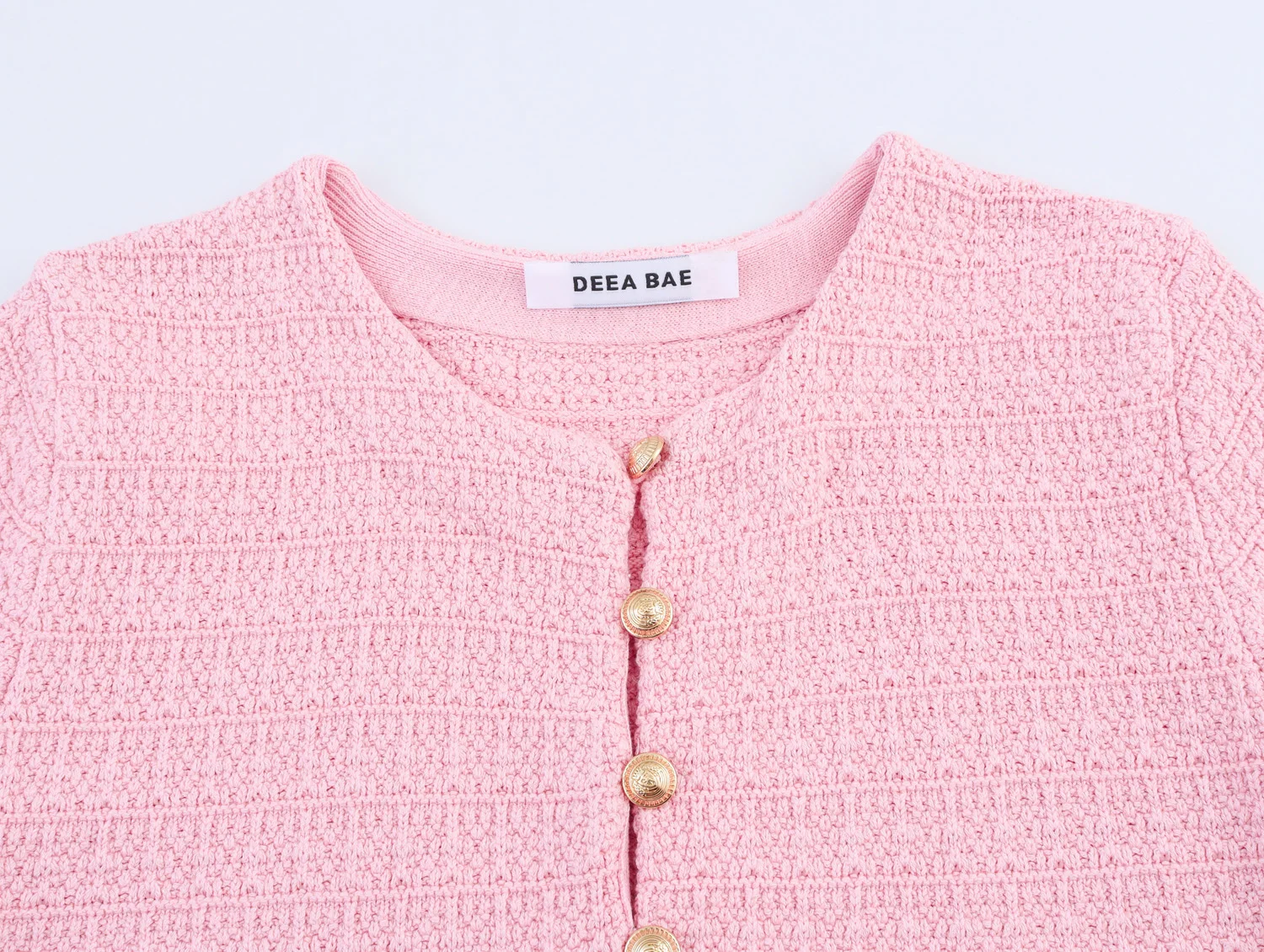 مجموعة كارديجان محبوك بأكمام قصيرة وتنورة نصفية أنيقة ومتعددة الاستخدامات برقبة مستديرة ومشبك من مجموعة DEEABAE لفصل الخريف والشتاء