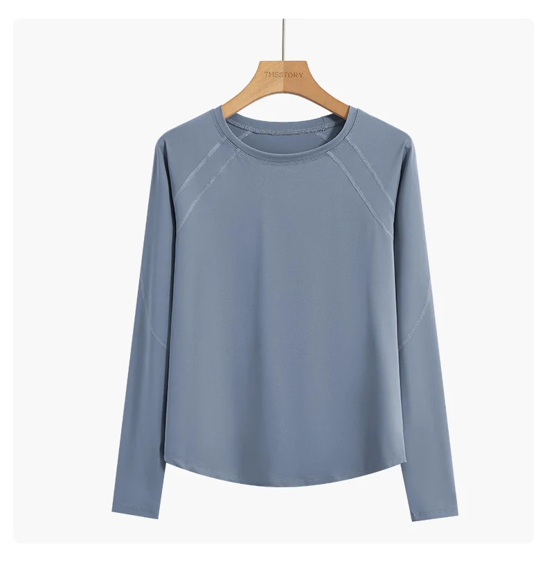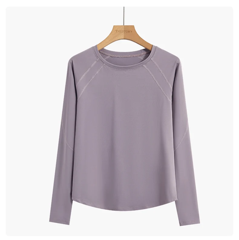 قميص يوغا نسائي بأكمام طويلة من DRUR سريع الجفاف وجيد التهوية، بلوزة رياضية خفيفة الوزن برقبة دائرية، ملابس رياضية للركض والبيلاتس