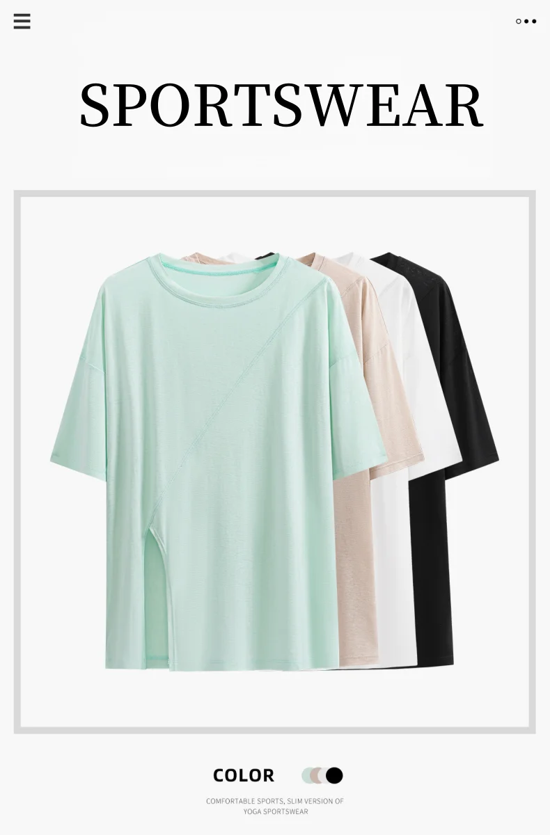 قمصان يوغا صيفية رفيعة للنساء من DRUR، فضفاضة وجيدة التهوية، مع فتحات جانبية، تي شيرت رياضي خفيف الوزن للجري، ملابس رياضية