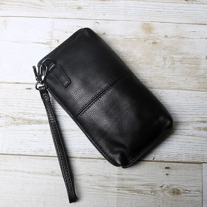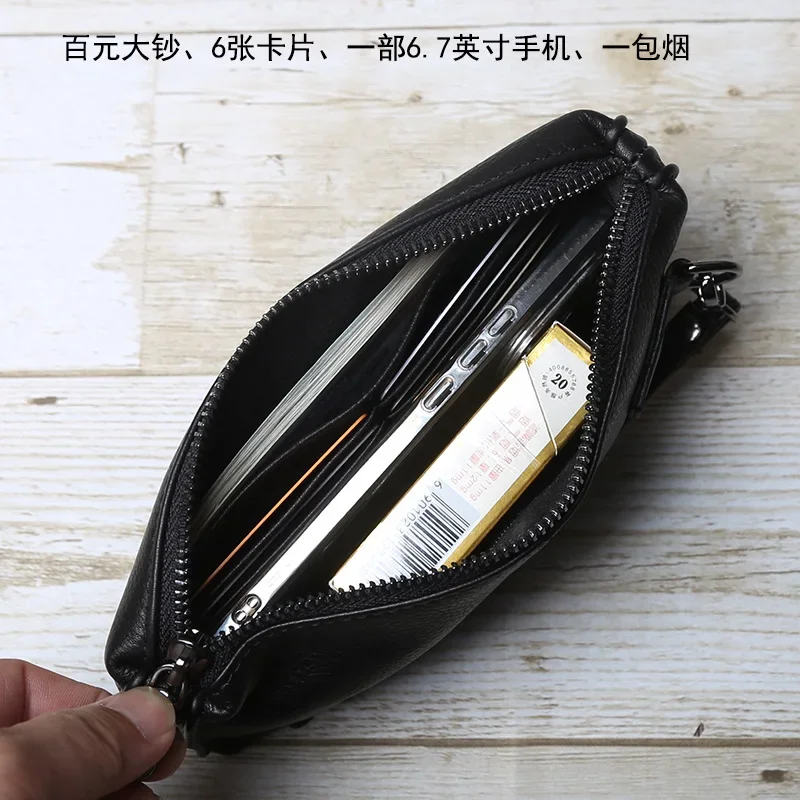 حقيبة يد جلدية أصلية للرجال من الجلد الناعم بتصميم كلاسيكي كاجوال بطبقة علوية من جلد البقر ومحفظة طويلة مع حقيبة هاتف بسحاب كبيرة السعة