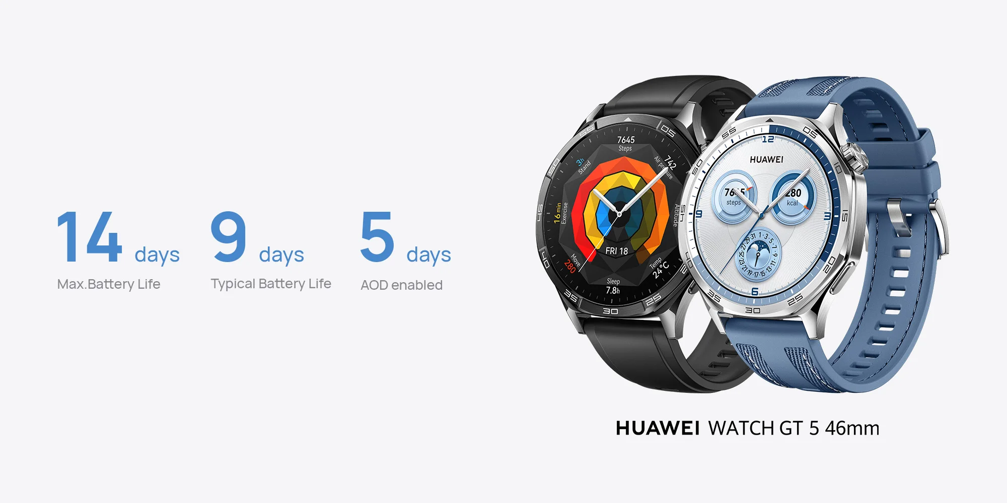 ساعة HUAWEI Watch GT 4/GT 5 الذكية، عمر بطارية يصل إلى 14 يومًا، تتبع الصحة، متوافقة مع أنظمة iOS وAndroid