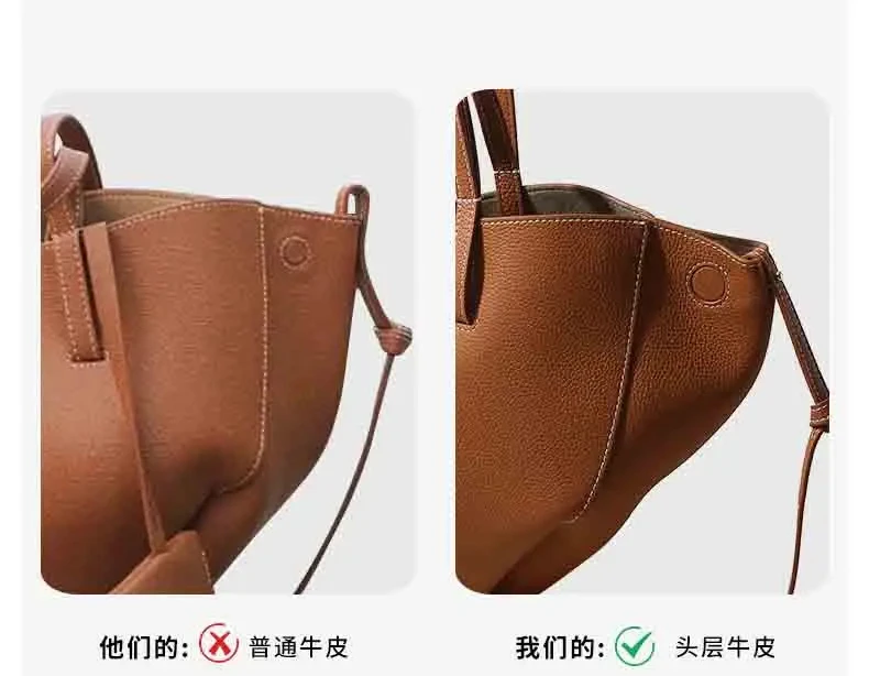 حقيبة نسائية فاخرة بتصميم دلو من الجلد بسعة كبيرة، حقيبة كروس بودي كاجوال واسعة النطاق للنساء