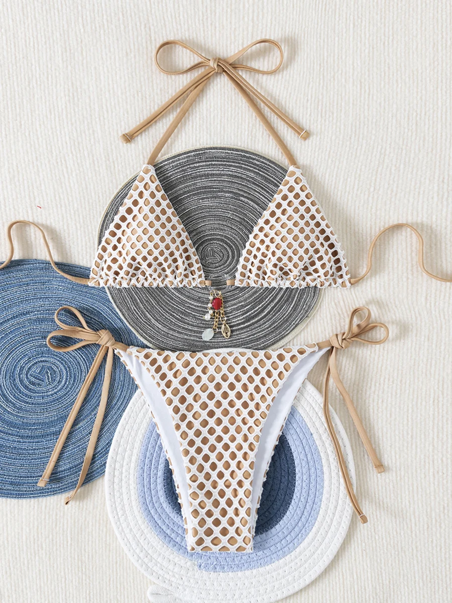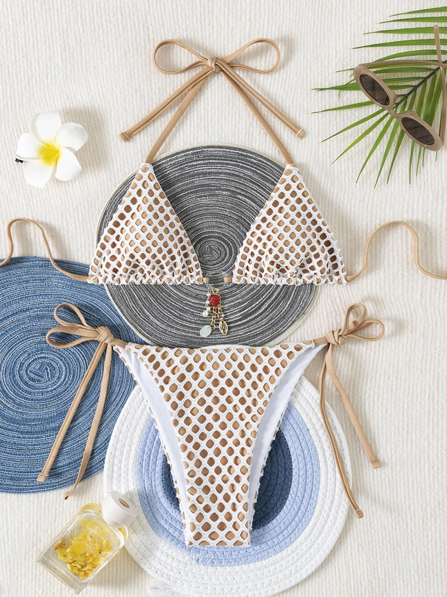 ملابس سباحة مثيرة ببيكيني صغير للنساء 2025، طقم بيكيني برازيلي منقط، ملابس سباحة بكيني بخيط رفيع، ملابس شاطئ نسائية