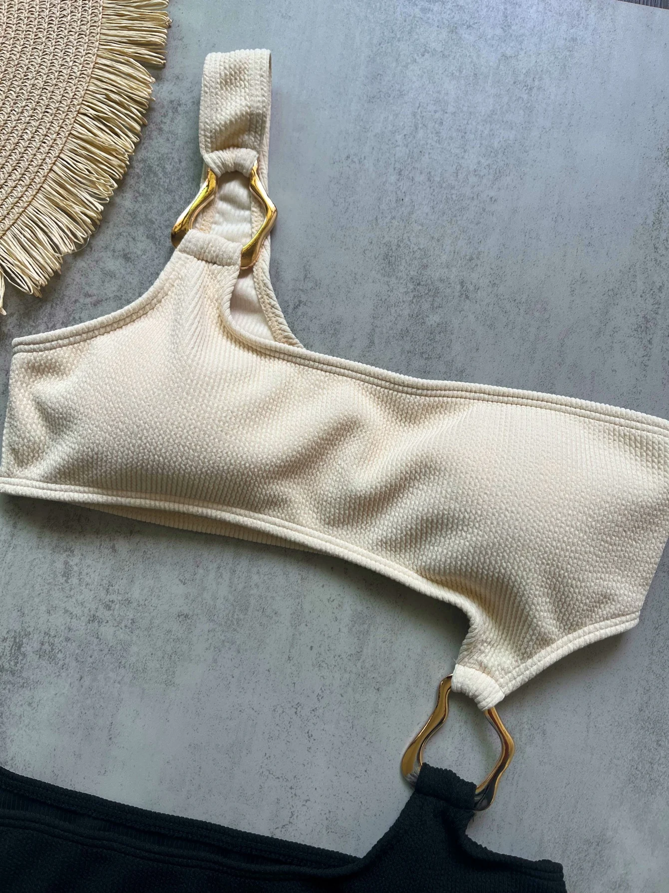 ملابس سباحة نسائية جديدة غير متماثلة بكتف واحد من قطعة واحدة بحلقة معدنية عالية القطع