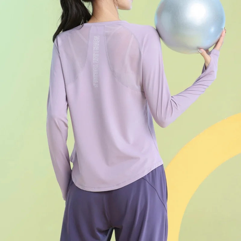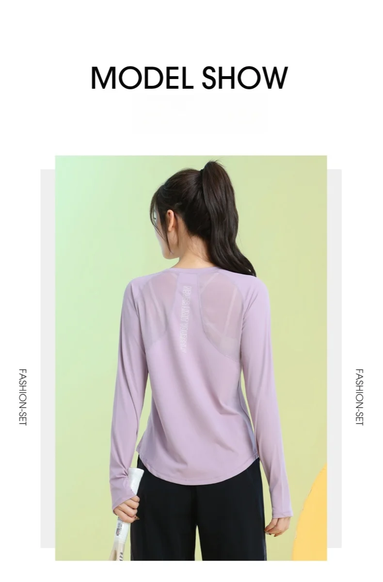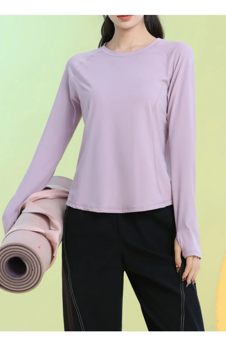 قميص يوجا نسائي بأكمام طويلة من PHIGEER سريع الجفاف وخفيف الوزن لممارسة التمارين الرياضية وملابس رياضية فضفاضة قابلة للتنفس وقميص للجري وملابس رياضية جديدة