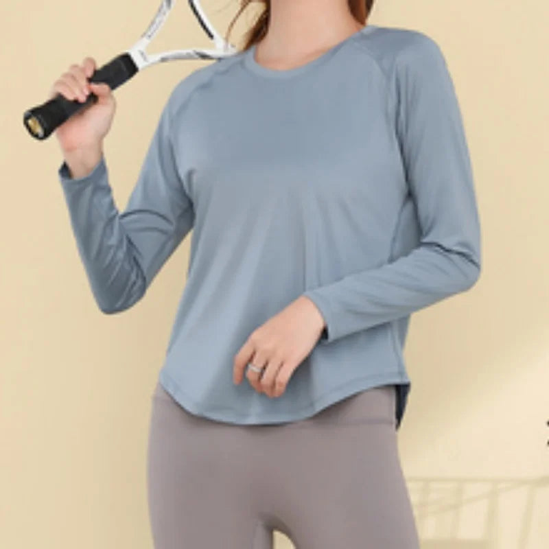 3. رقبة مستديرة كلاسيكية وأكمام راجلان: يتيح لك التصميم الكلاسيكي للرقبة المستديرة للقمصان الرياضية للسيدات الاستمتاع بالرياضة دون قيود.