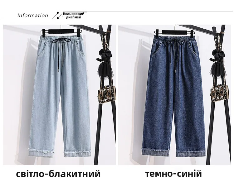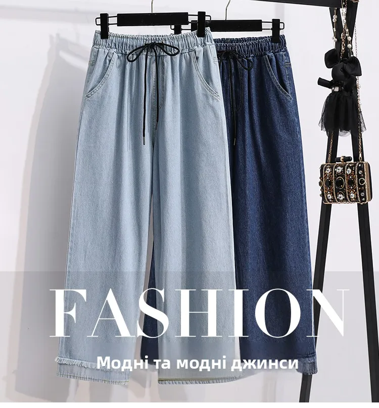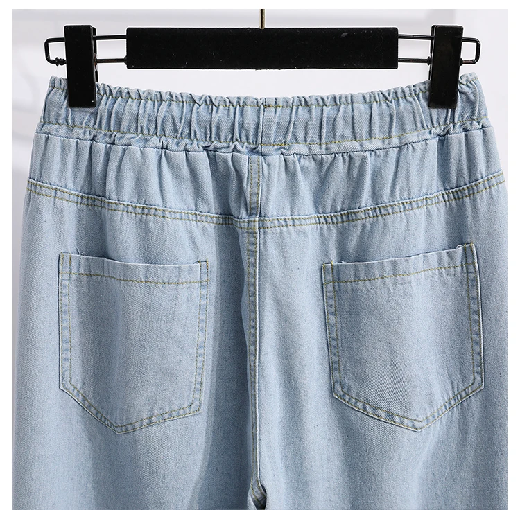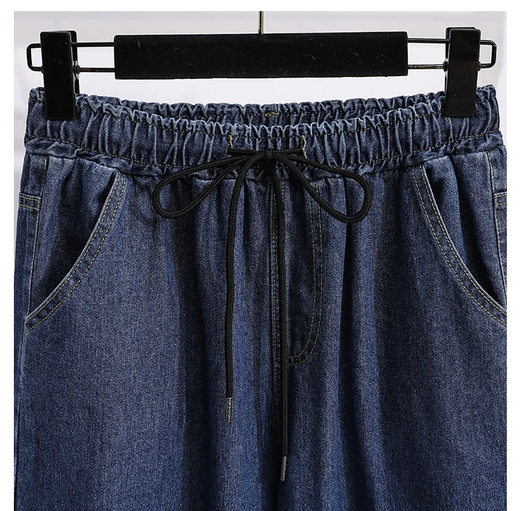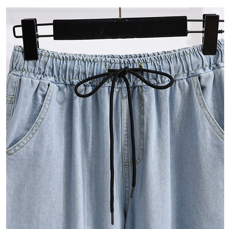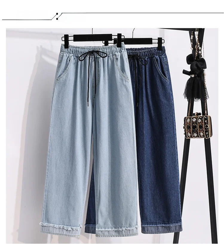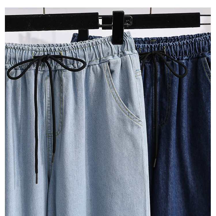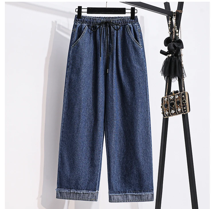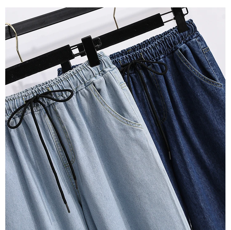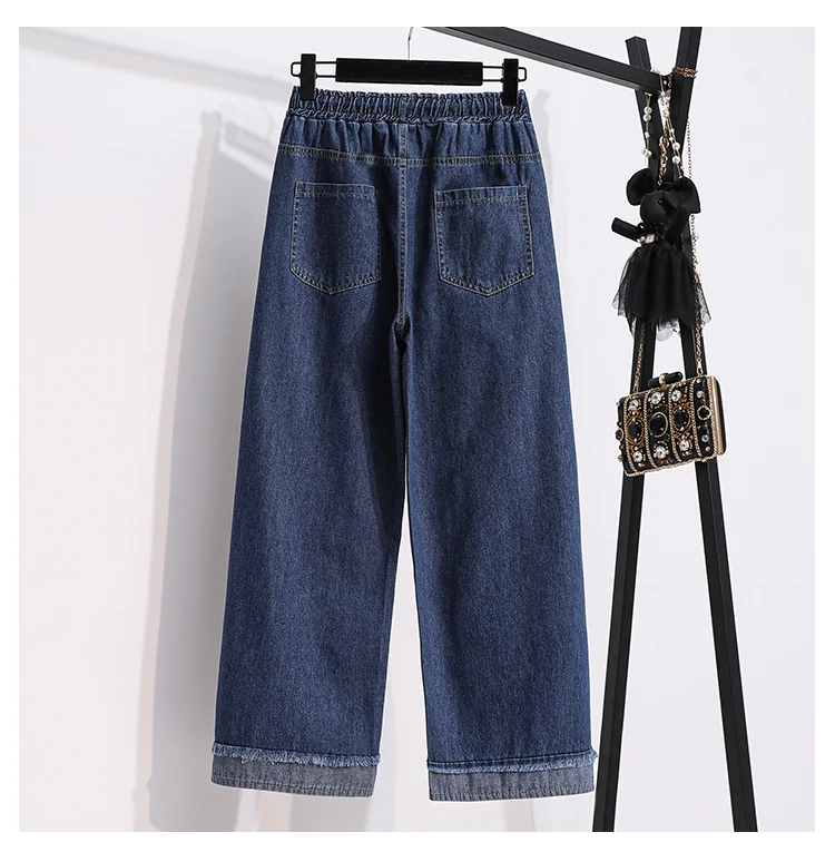 بنطلون جينز كاجوال بخصر عالٍ مقاس كبير، فضفاض، واسع الساق، من قماش الدنيم، وصل حديثًا، ملابس نسائية لمقاسات كبيرة، Sister