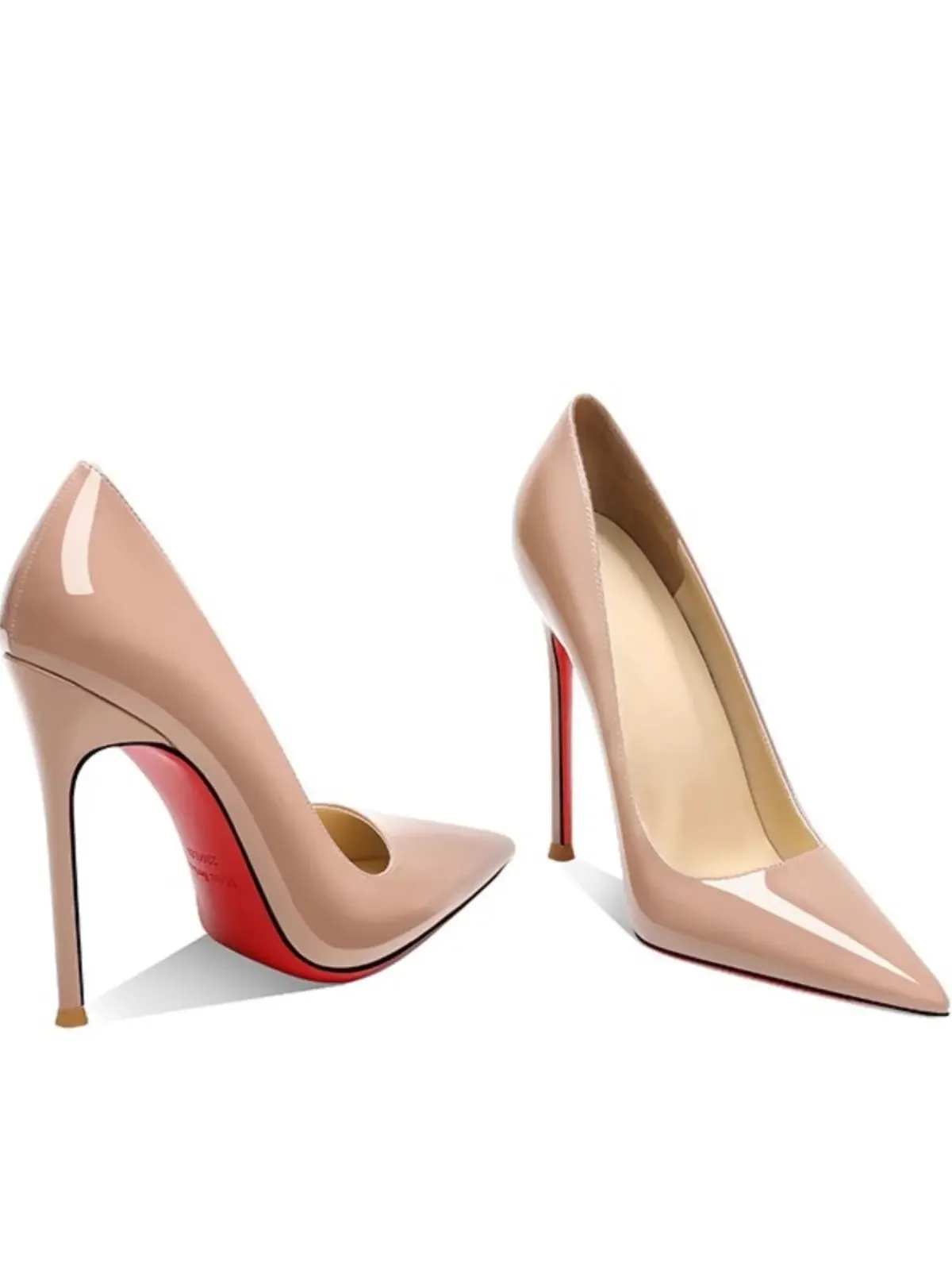 • حذاء بكعب رفيع من الجلد الصناعي اللامع: يتميز هذا الحذاء بكعب رفيع أنيق وطبقة نهائية من الجلد الصناعي اللامع، ويتمتع بمظهر عصري وأنيق، وهو مثالي لأي مناسبة احتفالية.