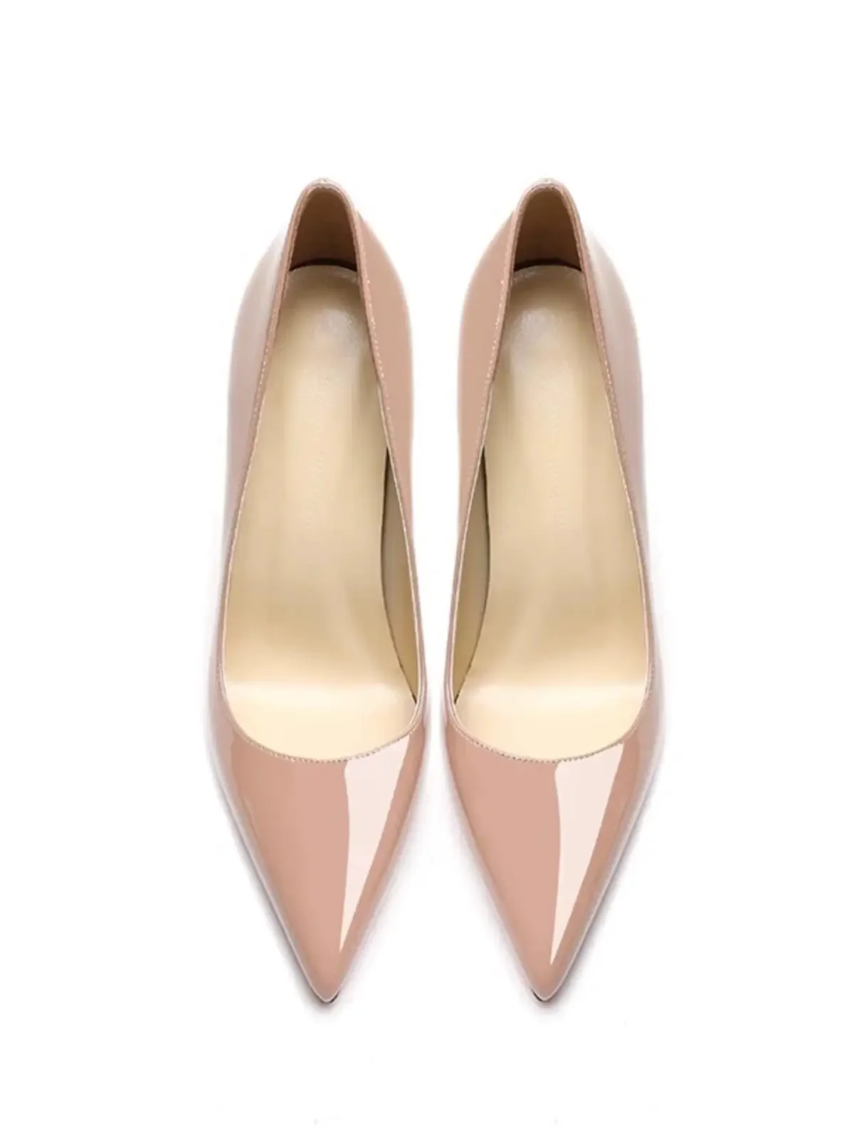 حذاء نسائي ربيعي أنيق مثير مصنوع من جلد البولي يوريثان سهل الارتداء بكعب عالٍ وكعب رفيع للحفلات