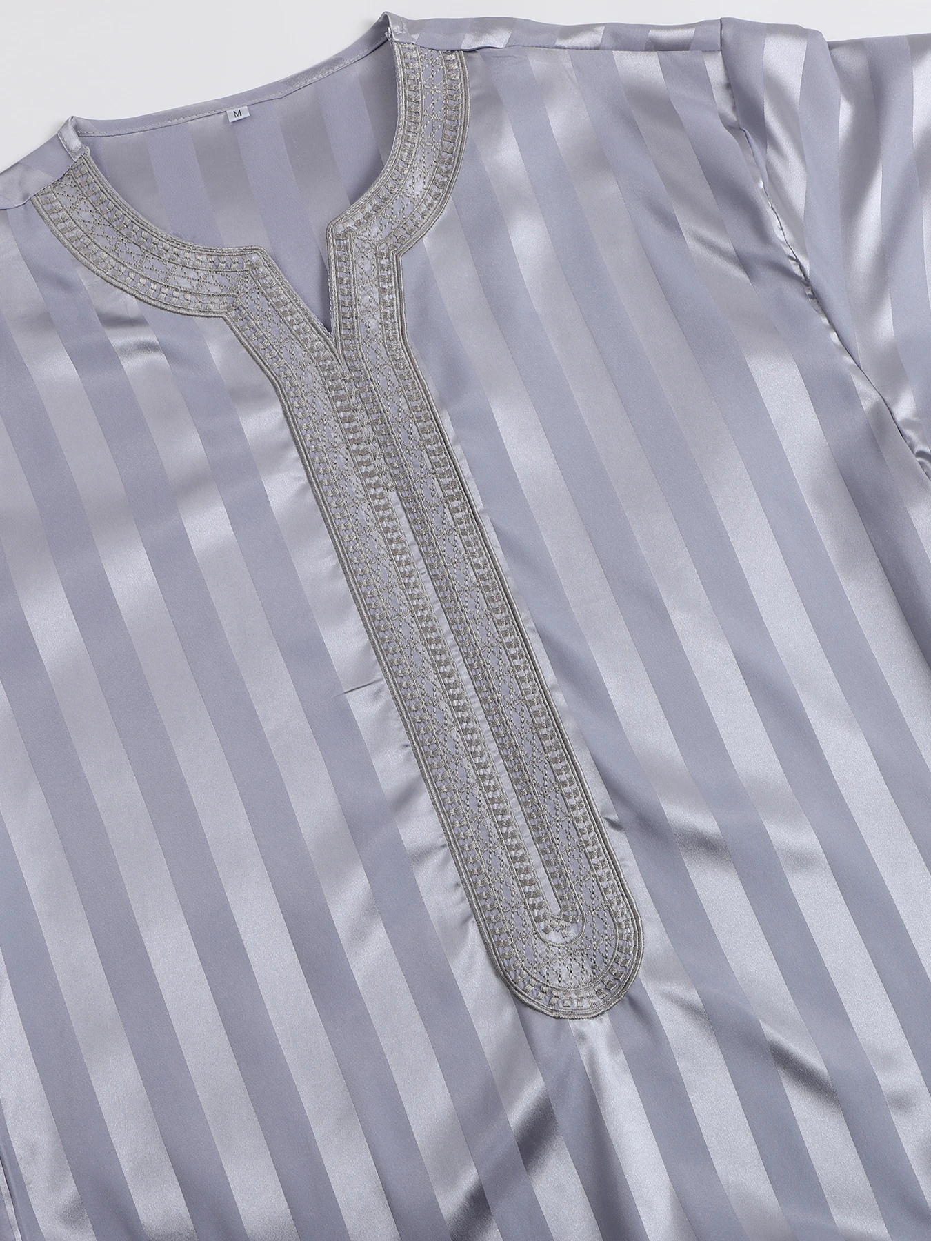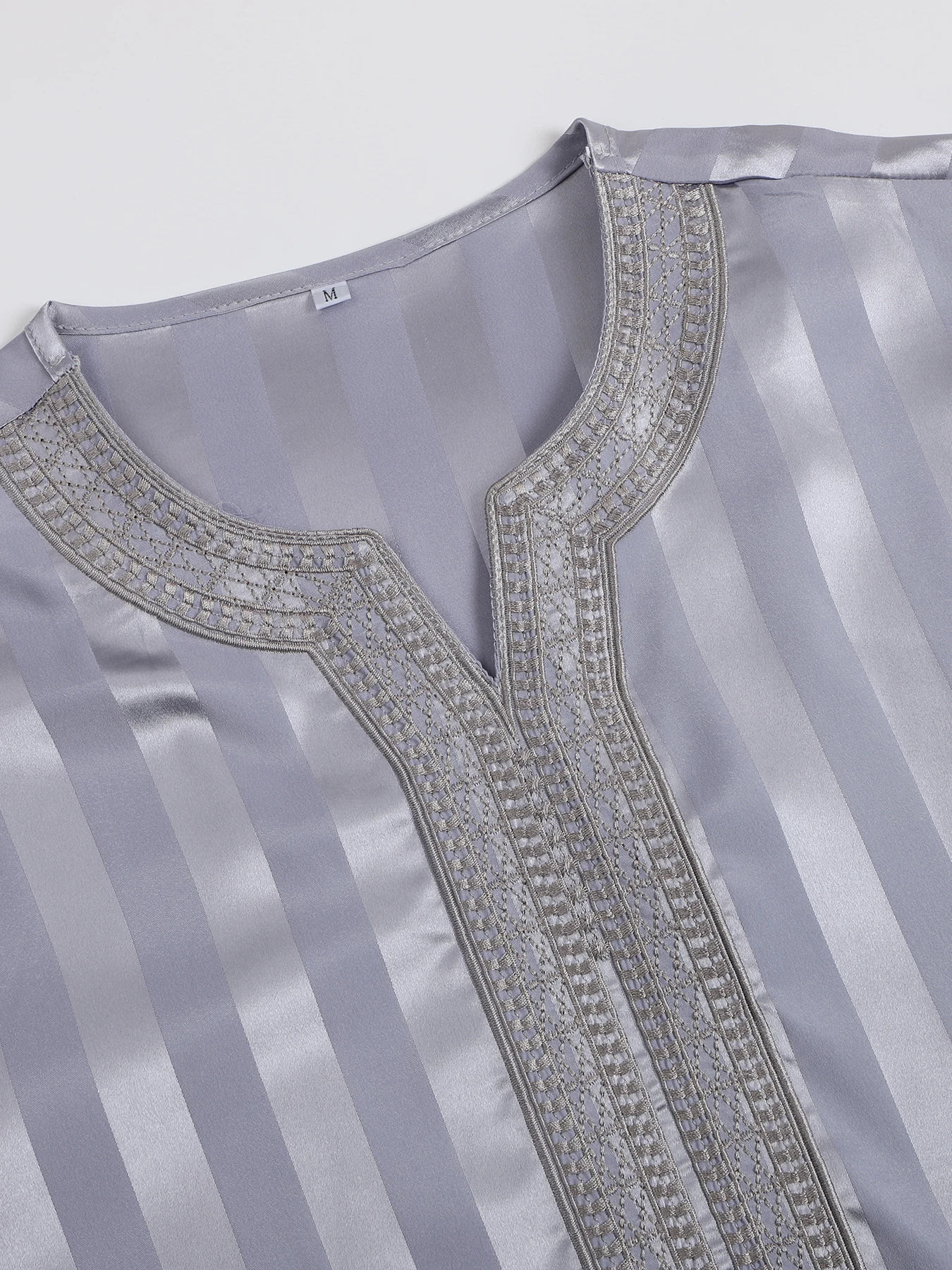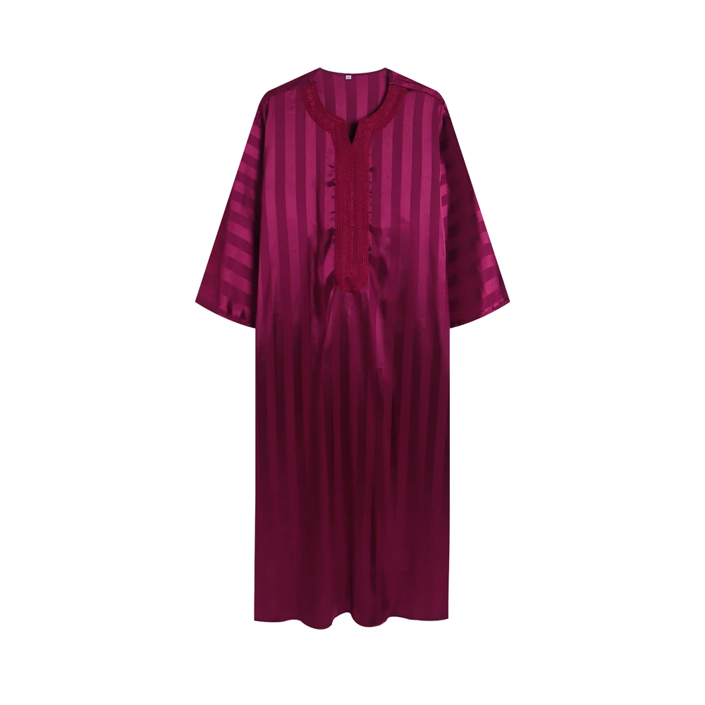 رداء إسلامي فضفاض عتيق بأكمام قصيرة للرجال، ثوب جوبا ثوب رجالي كاجوال مخطط مطرز، ملابس إسلامية للرجال