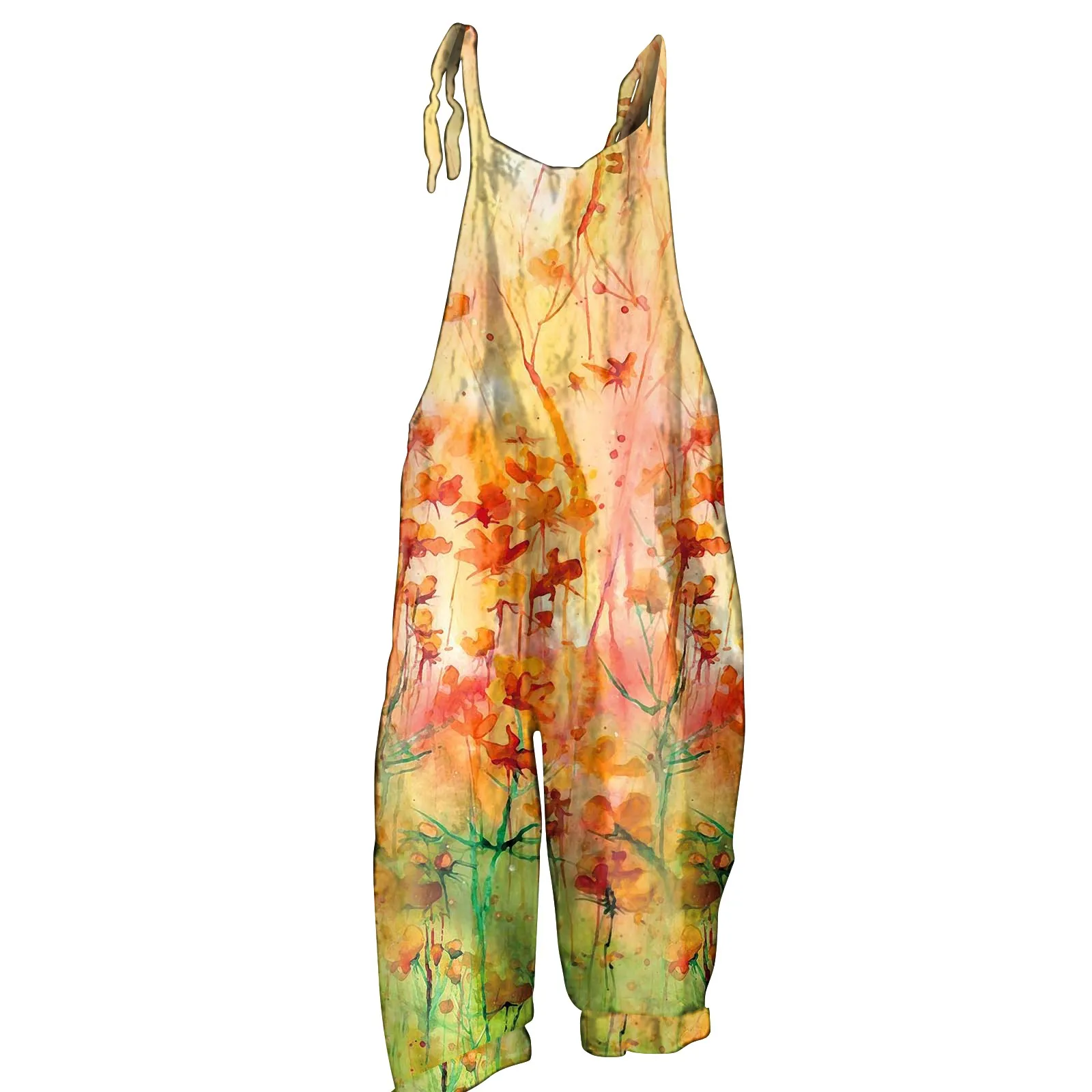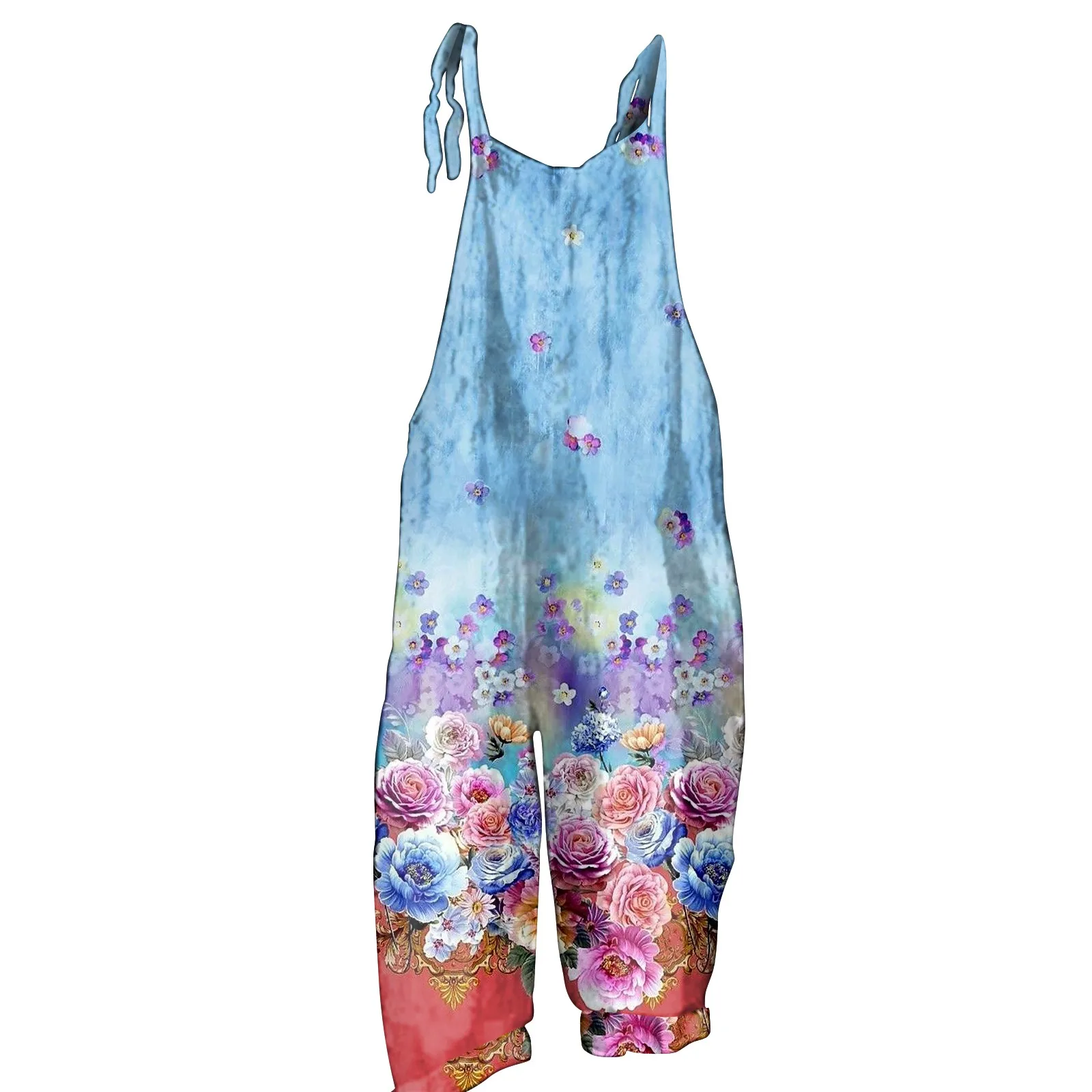 جمبسوت نسائي مطبوع كاجوال فضفاض عتيق بحزام كتف من القطن والكتان جمبسوت نسائي جمبسوت نسائي صيفي