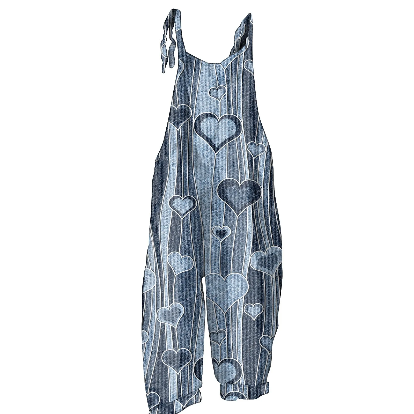 جمبسوت نسائي مطبوع كاجوال فضفاض عتيق بحزام كتف من القطن والكتان