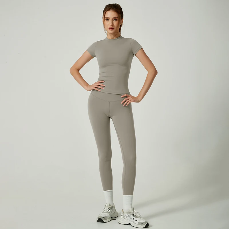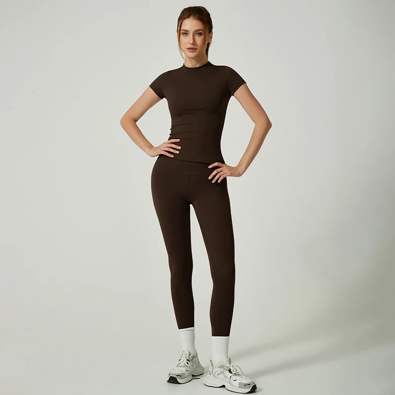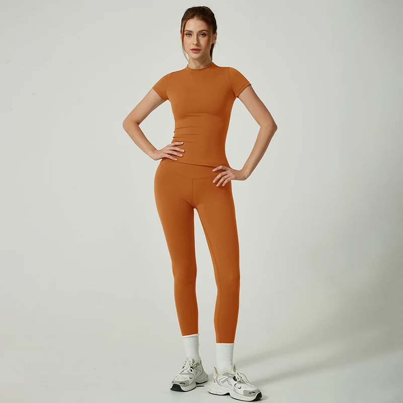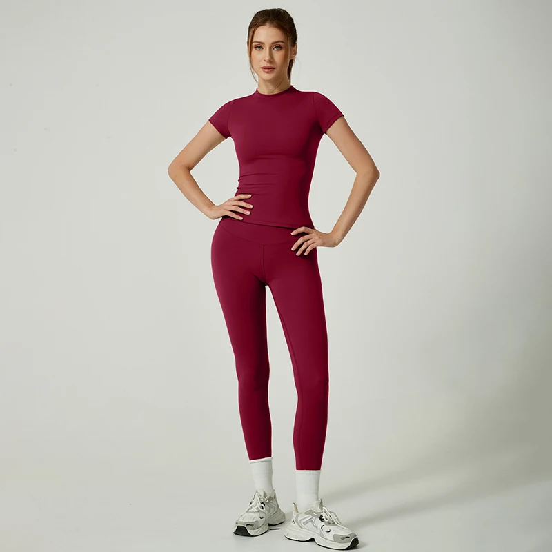مجموعة يوغا نسائية ملابس رياضية ملابس تمرين ملابس رياضية بنطال رياضي ضيق لياقة بدنية قميص قصير الأكمام بدلة رياضية